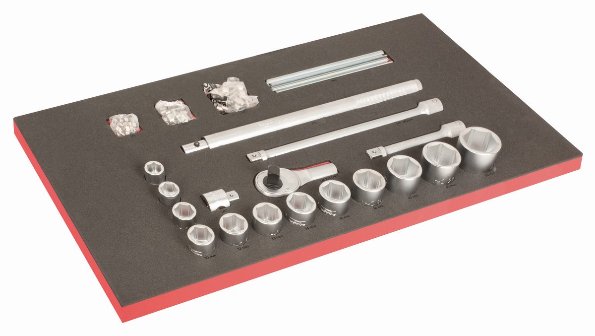 - Sistema de bandejas de foam para una organización limpia y ordenada de las herramientas.