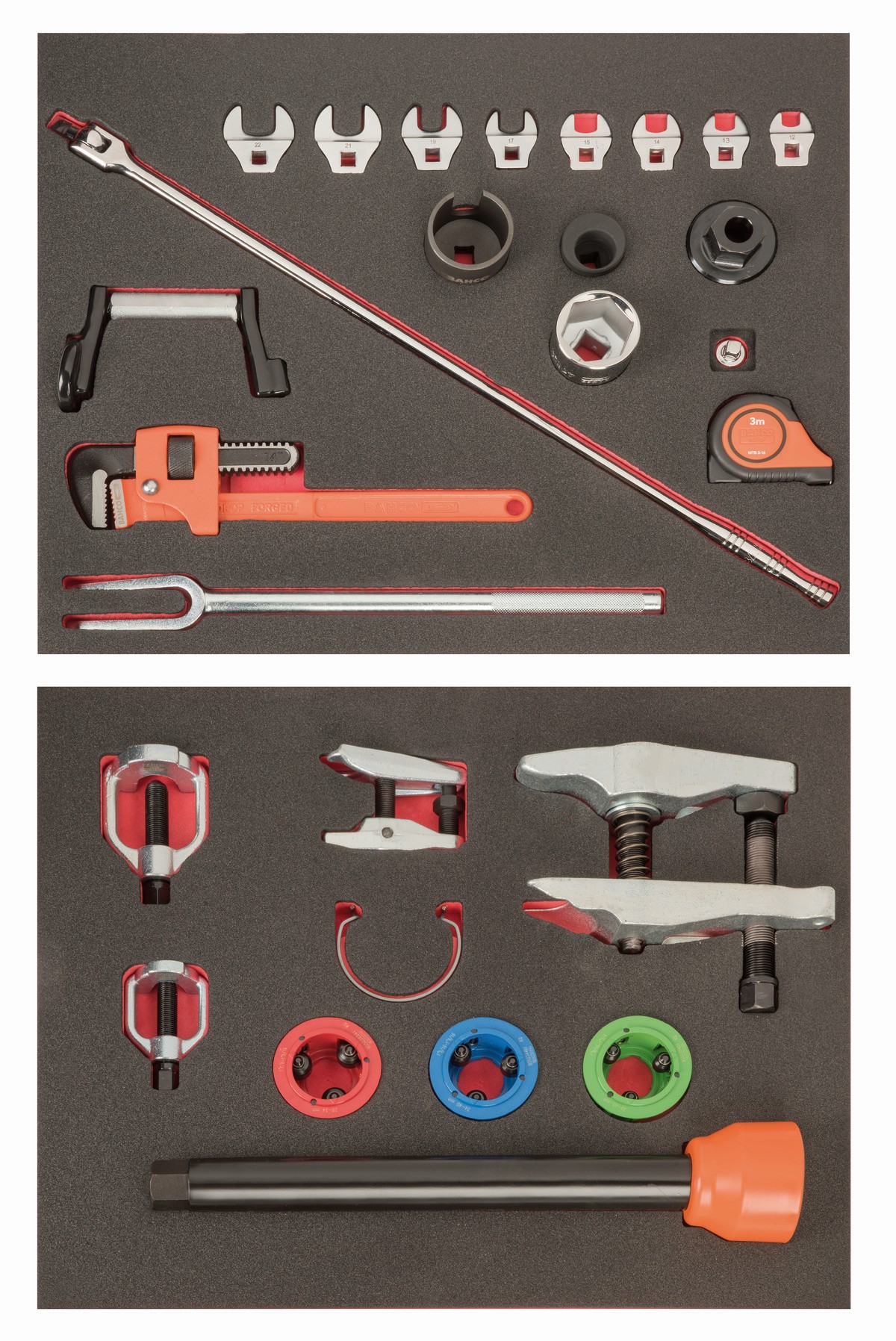 Sistema de bandejas de foam para una organización limpia y ordenada de las herramientas.