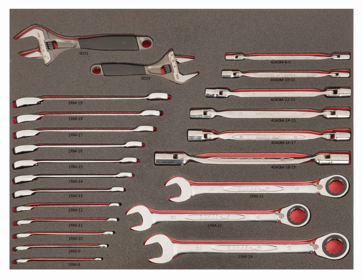 Juego de llaves de carraca articuladas y ajustables, en bandeja de foam 3/3 Fit&Go con marcado láser (23 piezas) | FF1A199LM de BAHCO