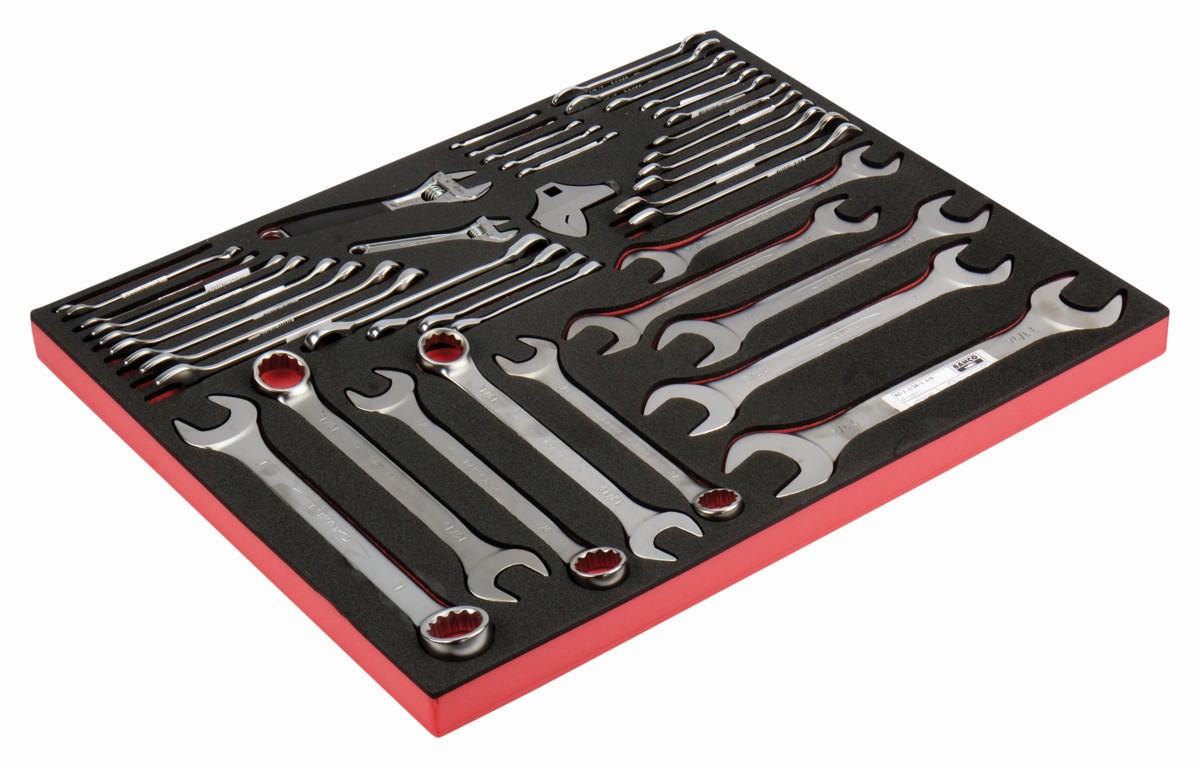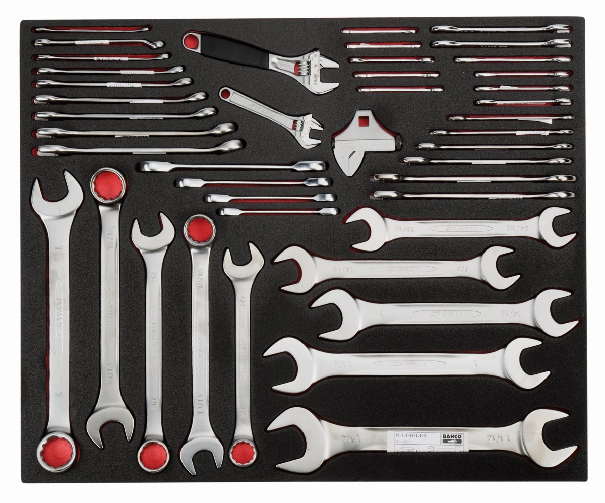 Juego de llaves combinadas y fijas de dos bocas imperiales en bandeja de foam 3/3 Fit&Go (43 piezas) | FF1A14 de BAHCO