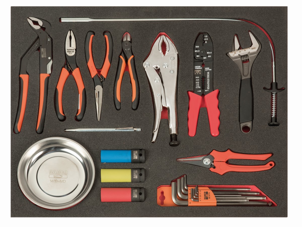 Juego de alicates, llaves acodadas, plato magnético y herramientas de recogida en bandeja de foam 3/3 Fit&Go (23 piezas) | FF1A167 de BAHCO