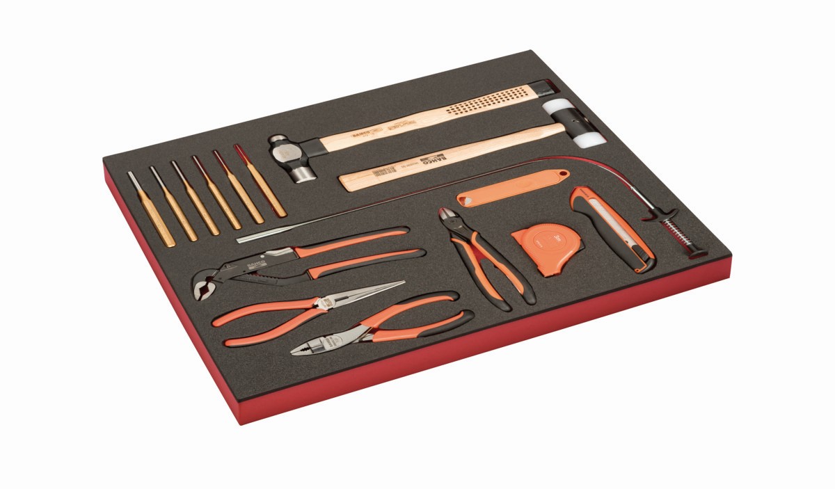 Herramientas de golpeo, corte y extracción y alicates en bandeja de foam 3/3 Fit&Go (25 piezas) | FF1A189 de BAHCO