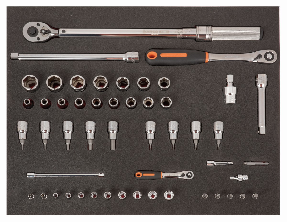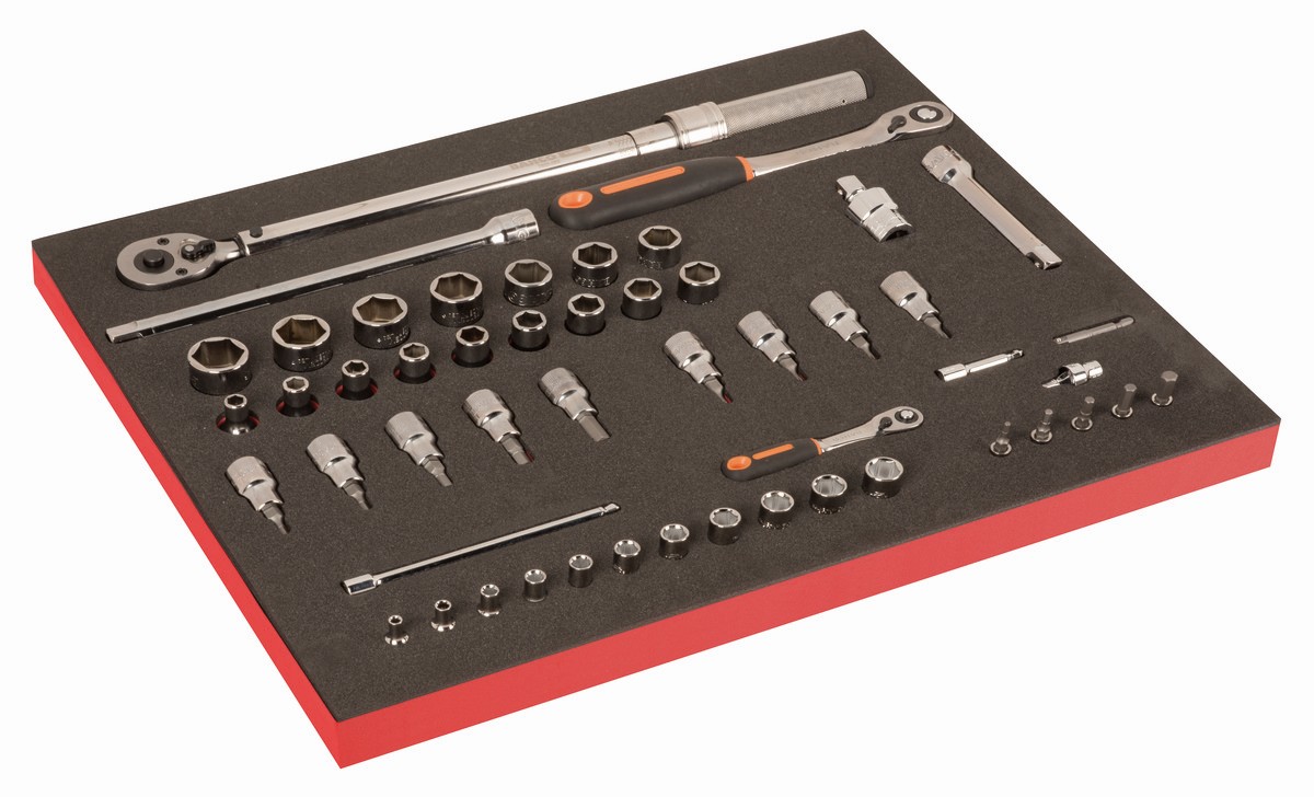 Juego de vasos de 1/2" y 1/4" y llave dinamométrica en bandeja de foam 3/3 Fit&Go (51 piezas) | FF1A194