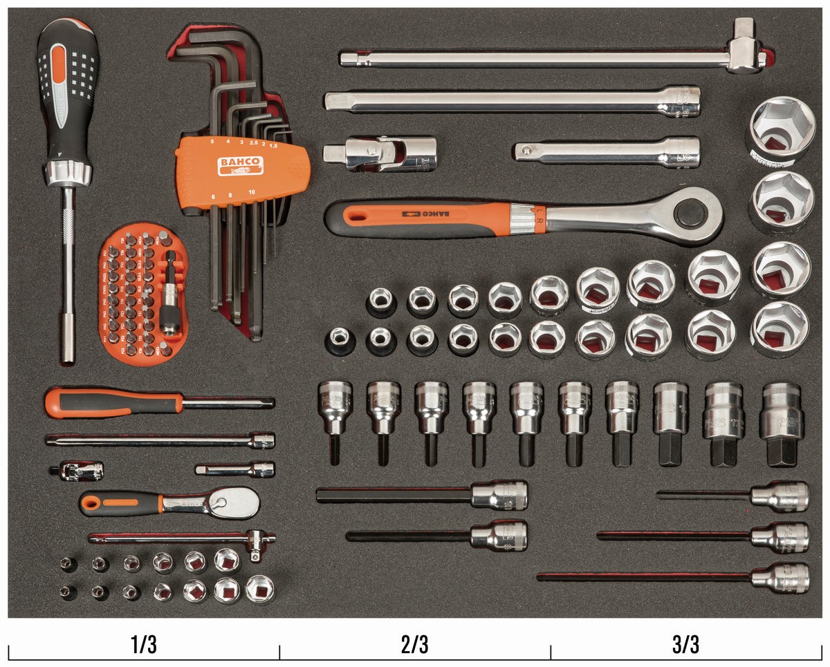 Juego de vasos de 1/2"-3/8" en bandeja de foam 3/3 Fit&Go, 101 piezas | FF1A2503 de BAHCO