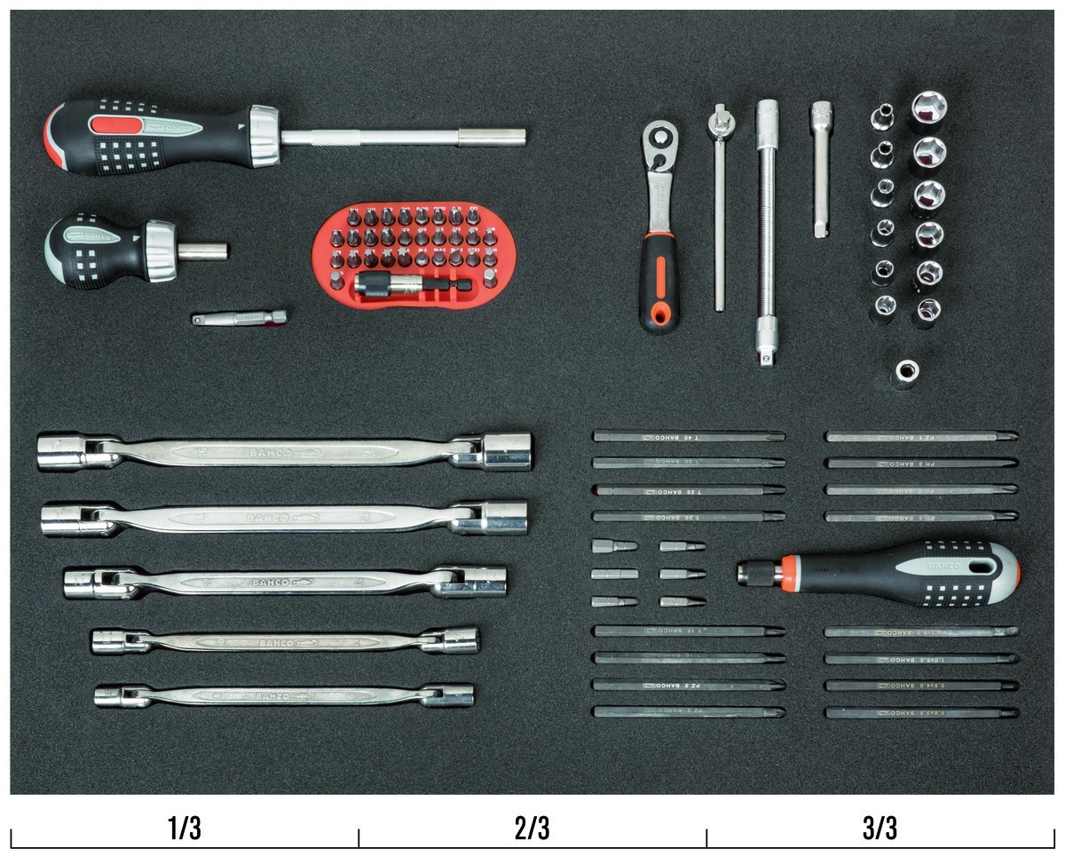 Juego de destornilladores/puntas/vasos en bandeja de foam 3/3 Fit&Go, 89 piezas | FF1A36 de BAHCO