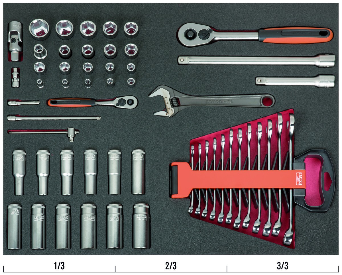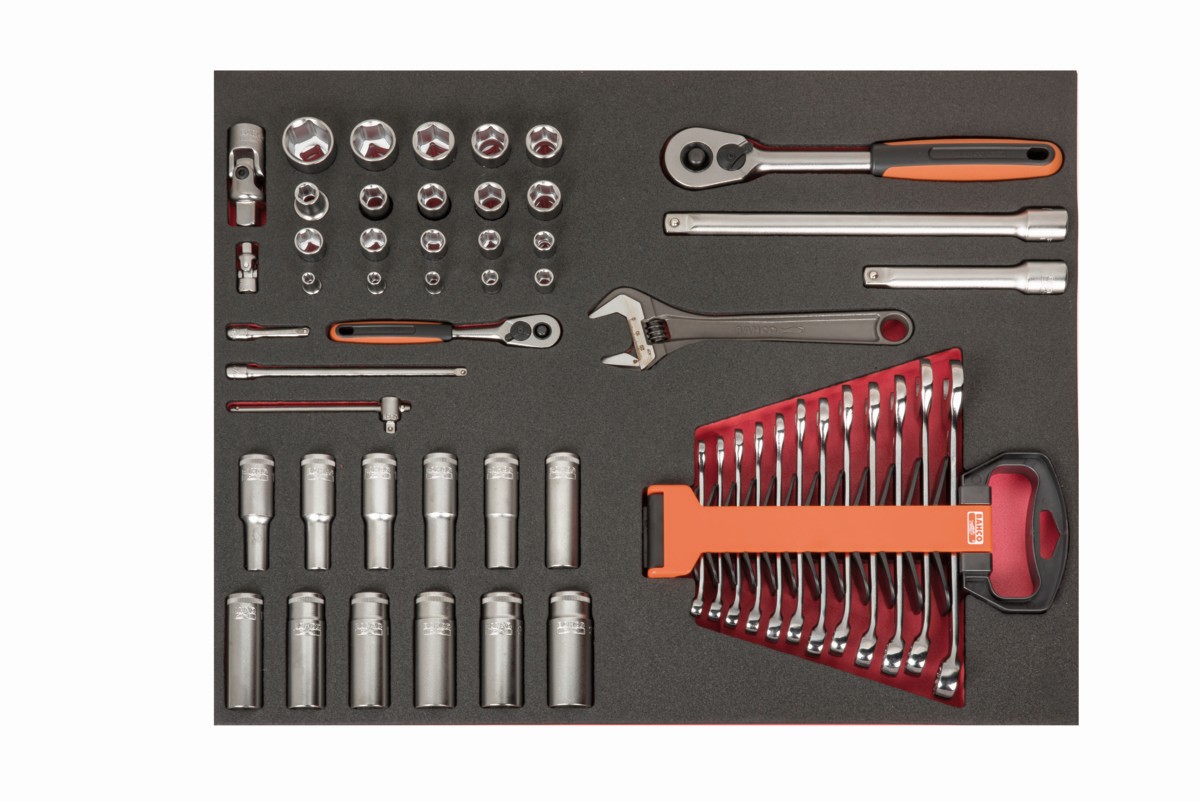 Juego de vasos y llaves en bandeja de foam 3/3 Fit&Go, 54 piezas | FF1A39 de BAHCO