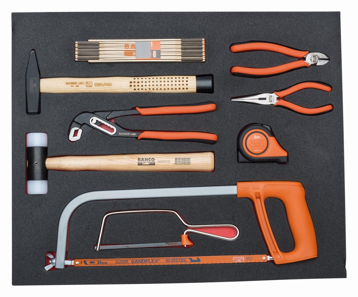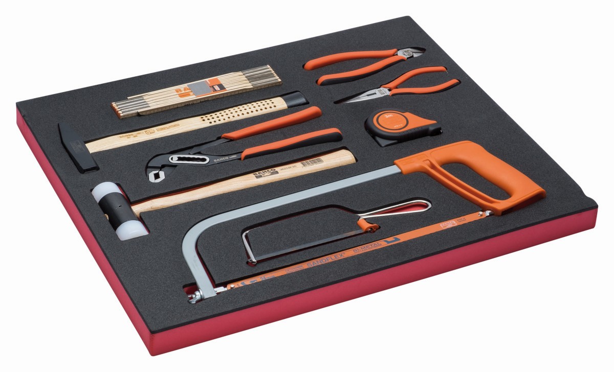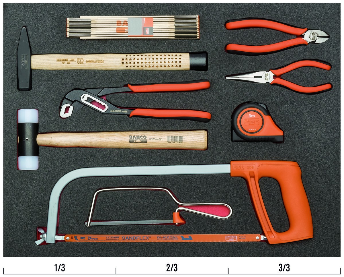 Juego de herramientas de golpeo y sierras en bandeja de foam 3/3 Fit&Go, 9 piezas | FF1A41 de BAHCO