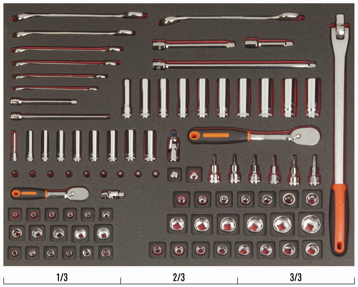 Juego de llaves combinadas y vasos de 1/4" + 3/8" en bandeja de foam 3/3 Fit&Go (91 piezas) | FF1A5003 de BAHCO