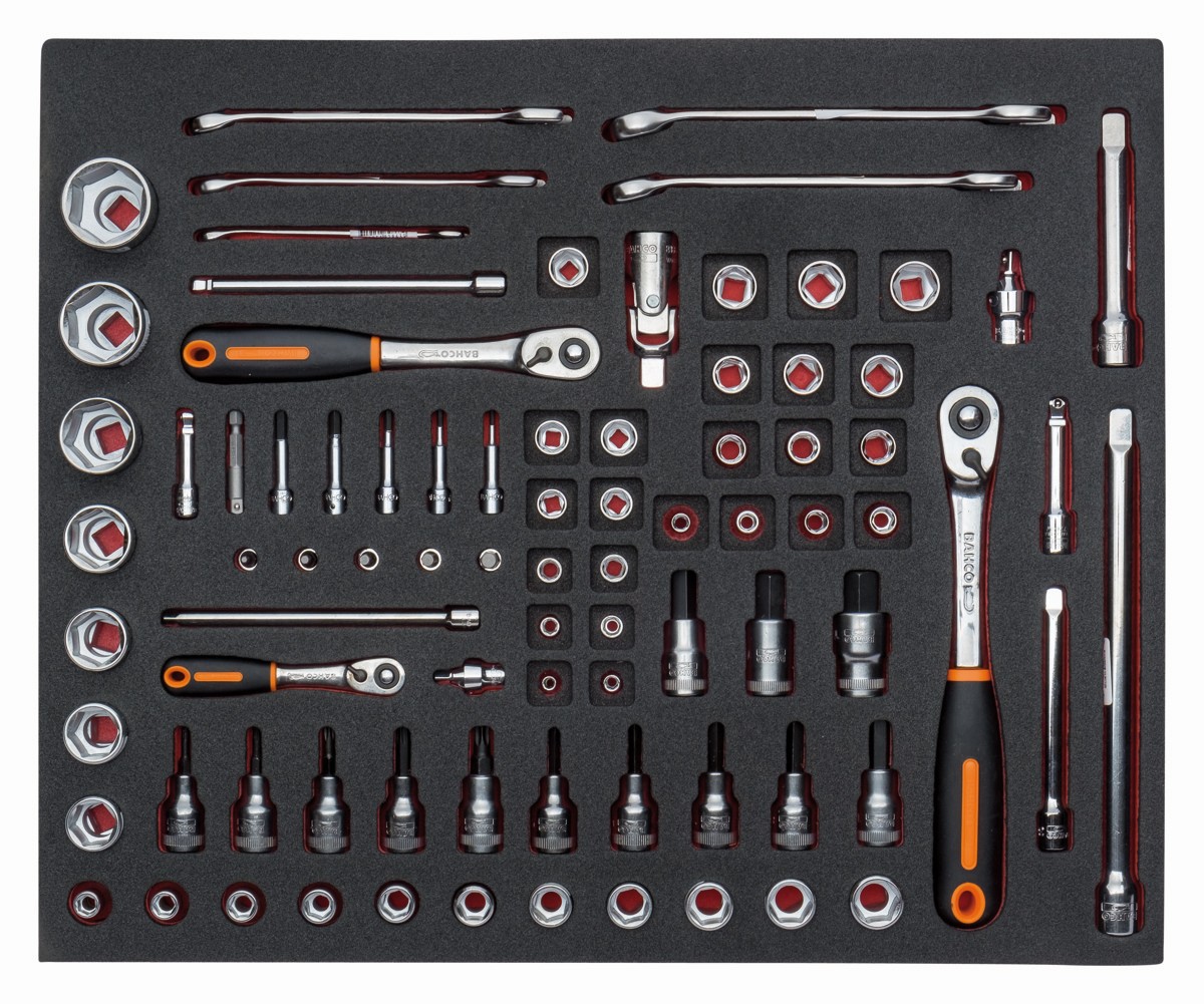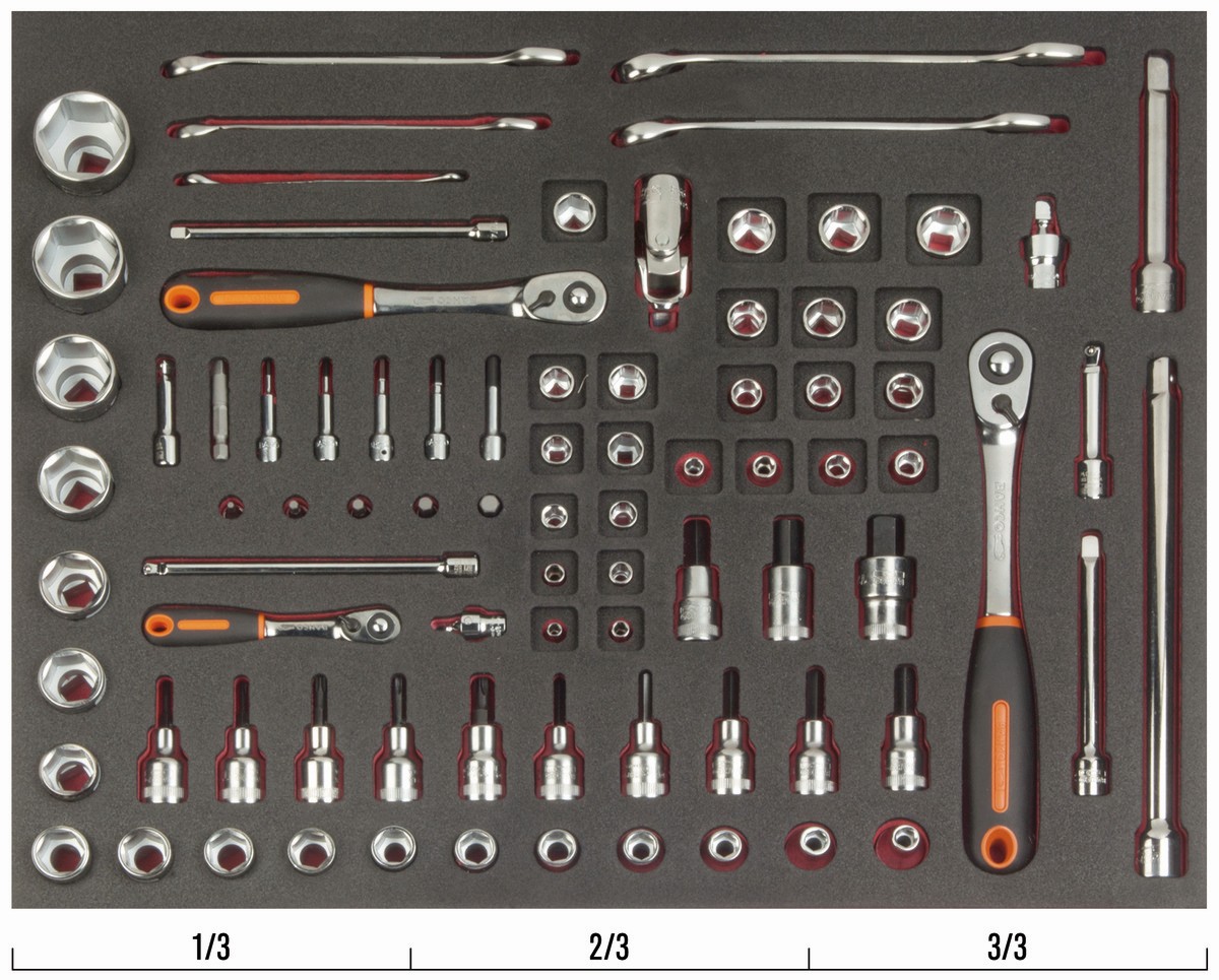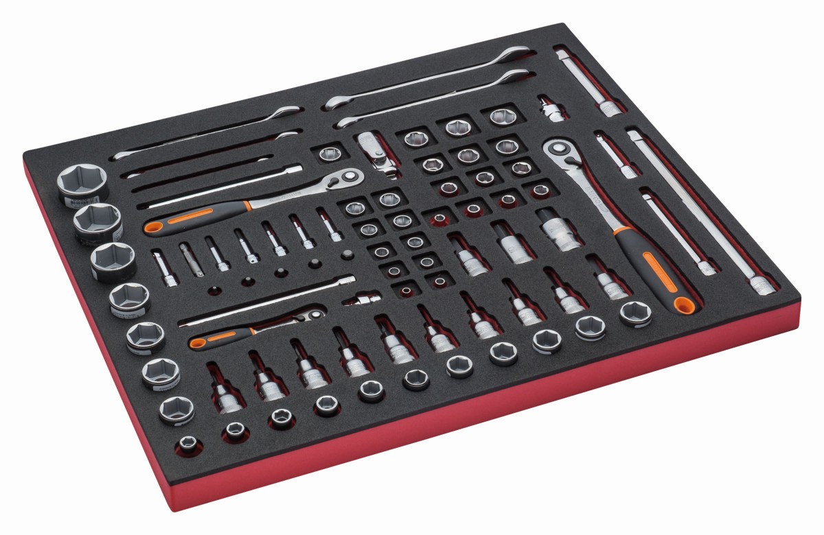 Juego de llaves combinadas y vasos en bandeja de foam 3/3 Fit&Go (83 piezas) | FF1A5005 de BAHCO