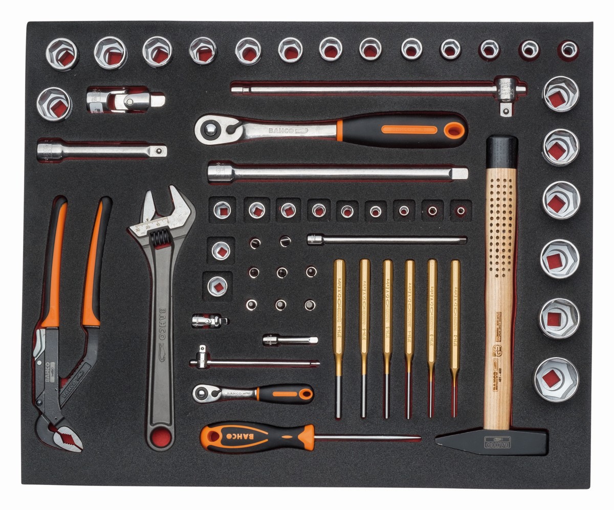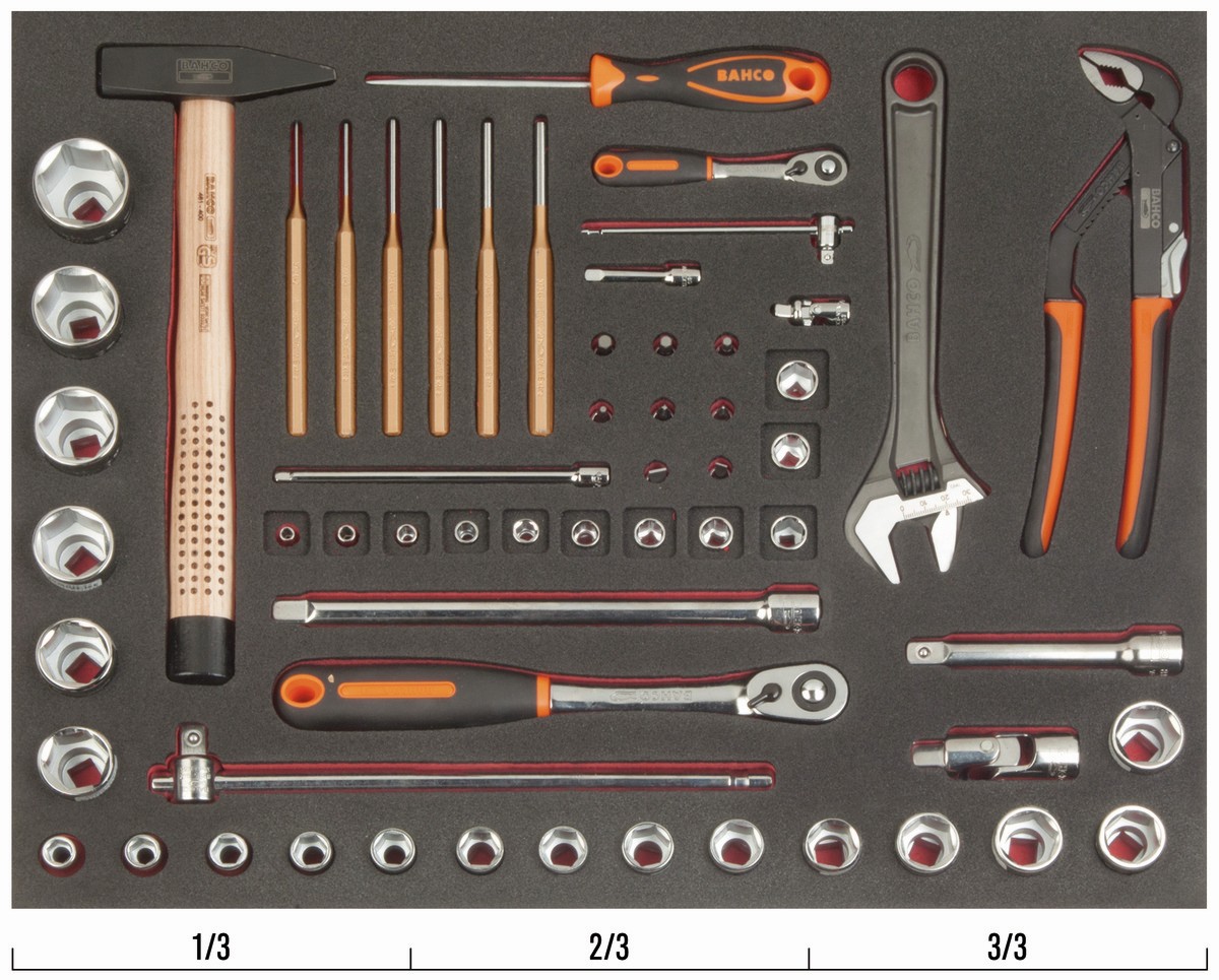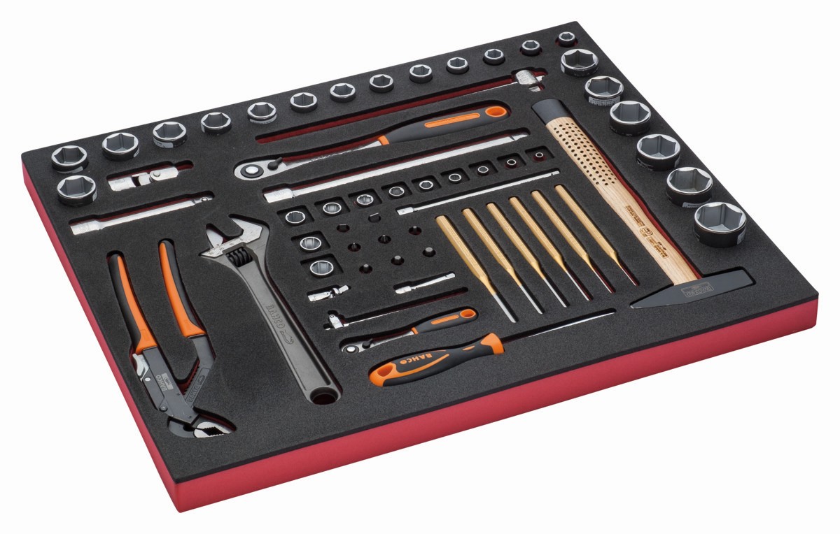 Juego de vasos y herramientas de golpeo en bandeja de foam 3/3 Fit&Go, 60 piezas | FF1A5007 de BAHCO