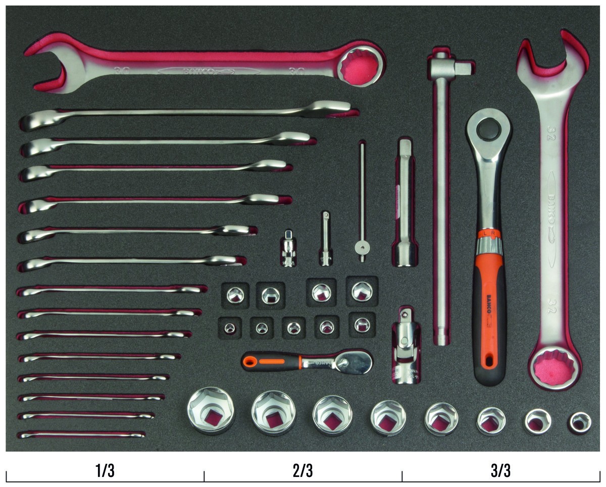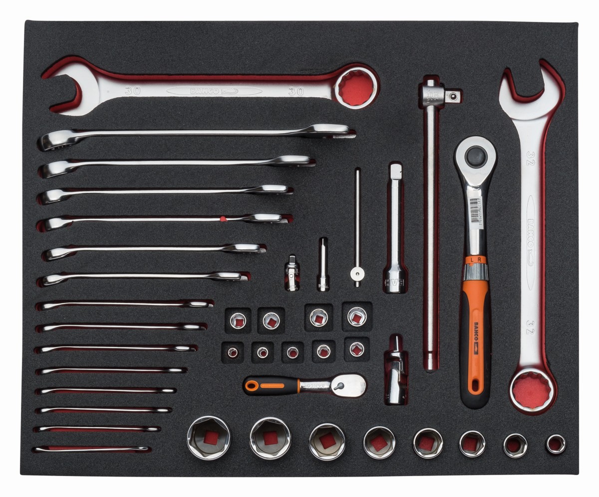 Juego de vasos y llaves combinadas en bandeja de foam 3/3 Fit&Go, 41 piezas | FF1A5013 de BAHCO