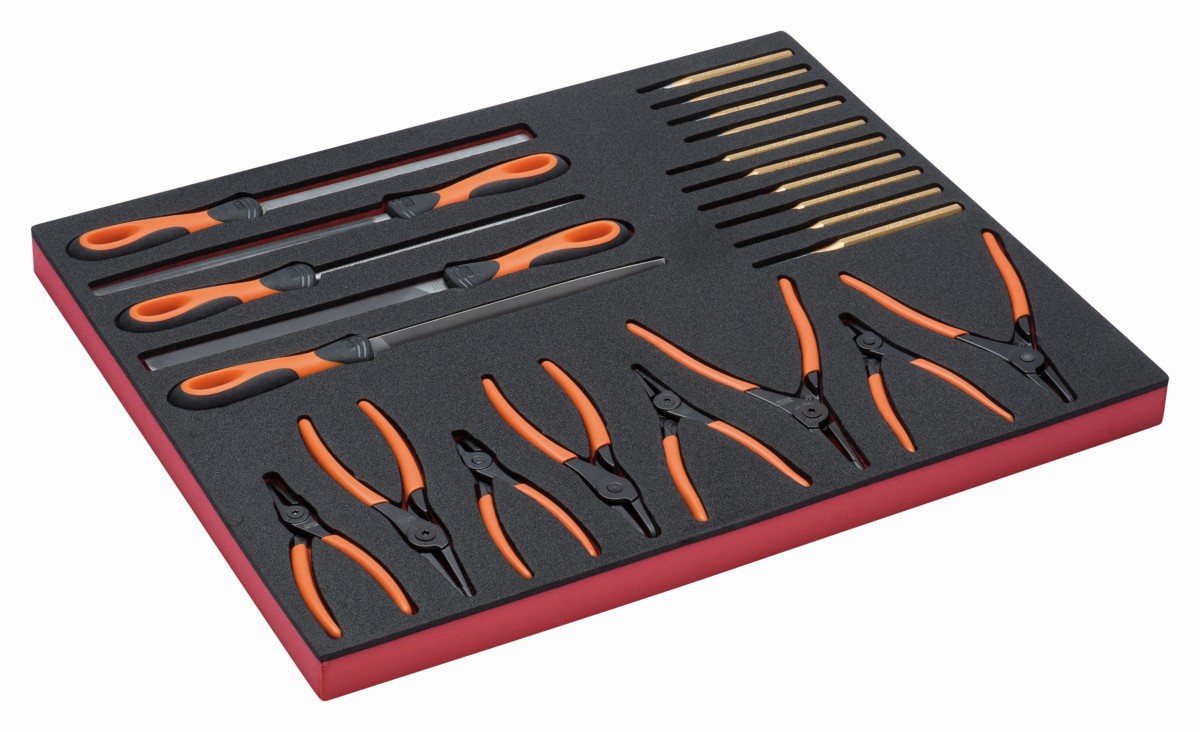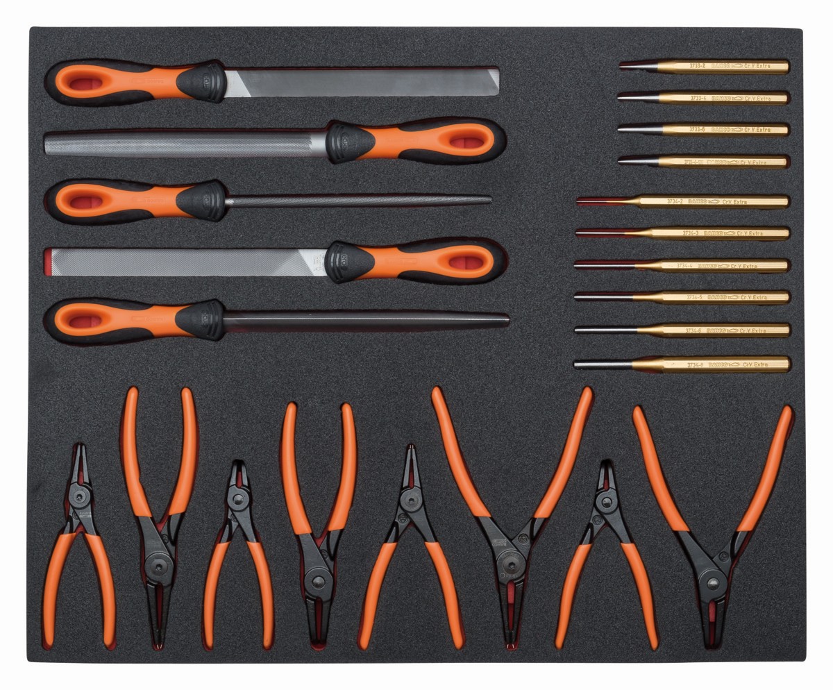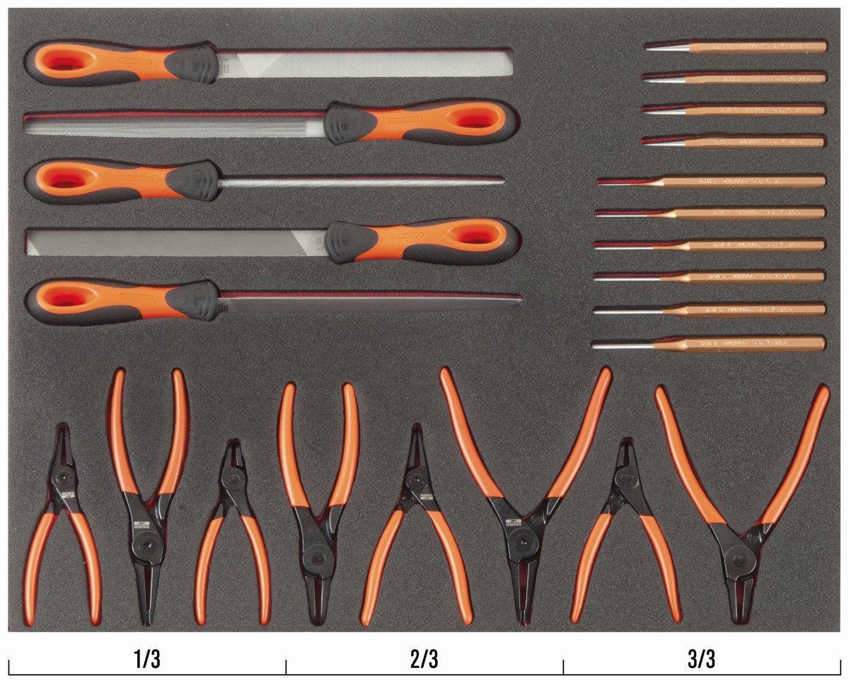 Juego de limas/alicates/botadores en bandeja de foam 3/3 Fit&Go, 23 piezas | FF1A51 de BAHCO