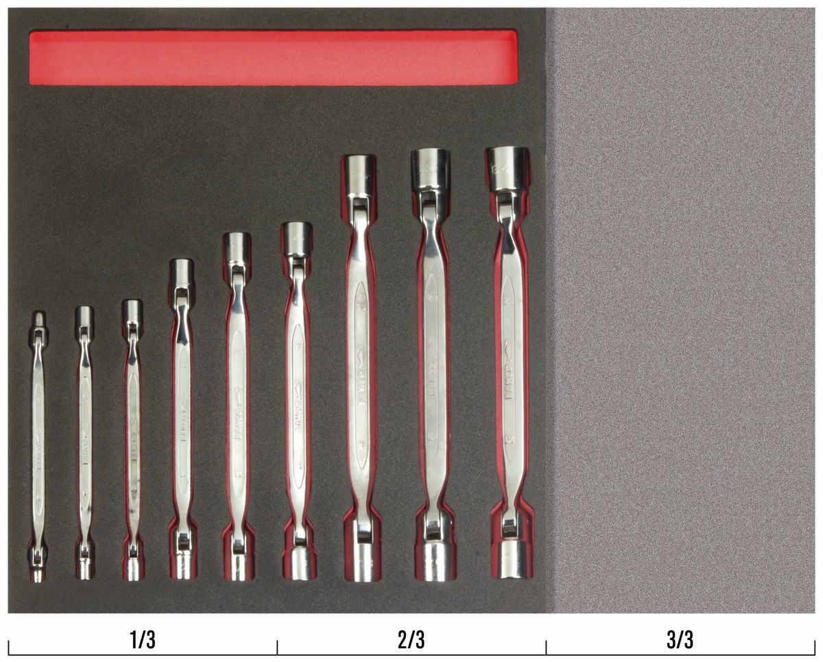 Juego de llaves de vaso de dos bocas en bandeja de foam 2/3 Fit&Go (9 piezas) | FF1F3008 de BAHCO
