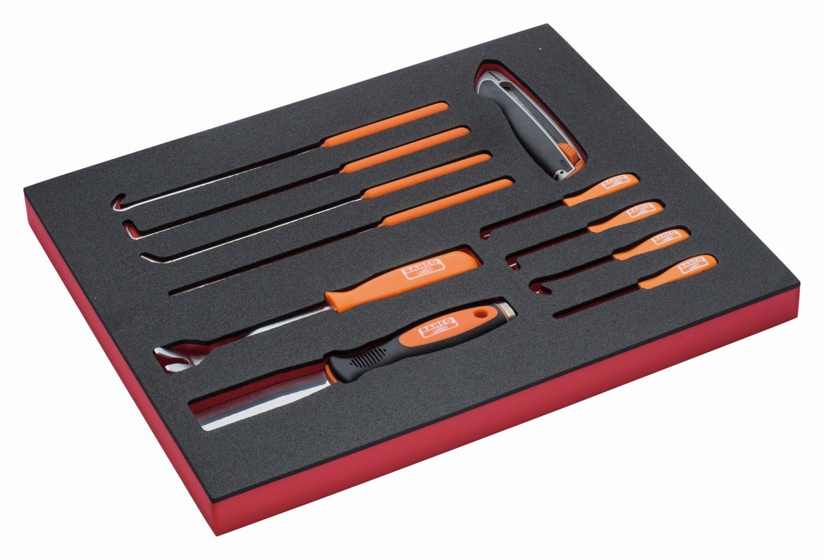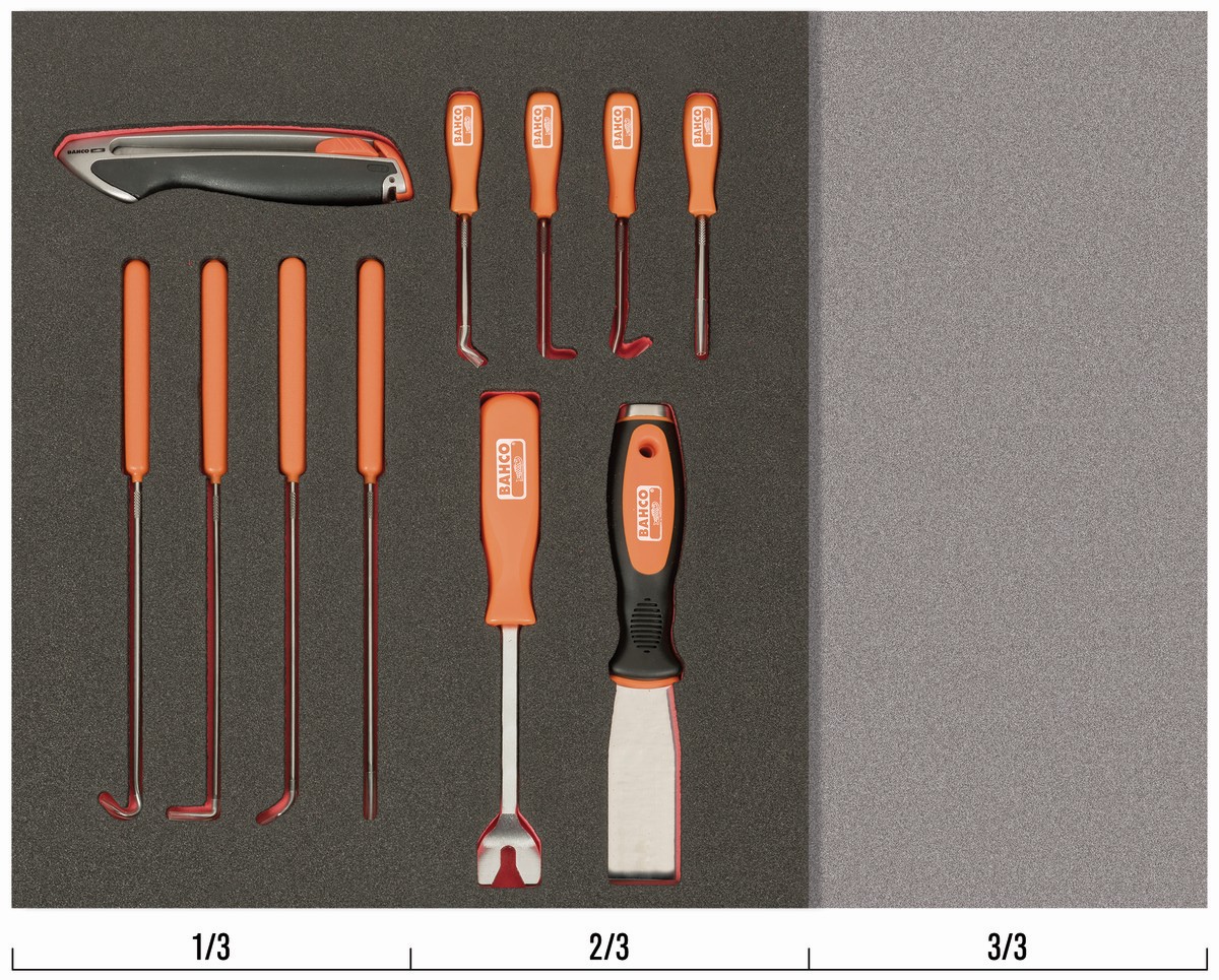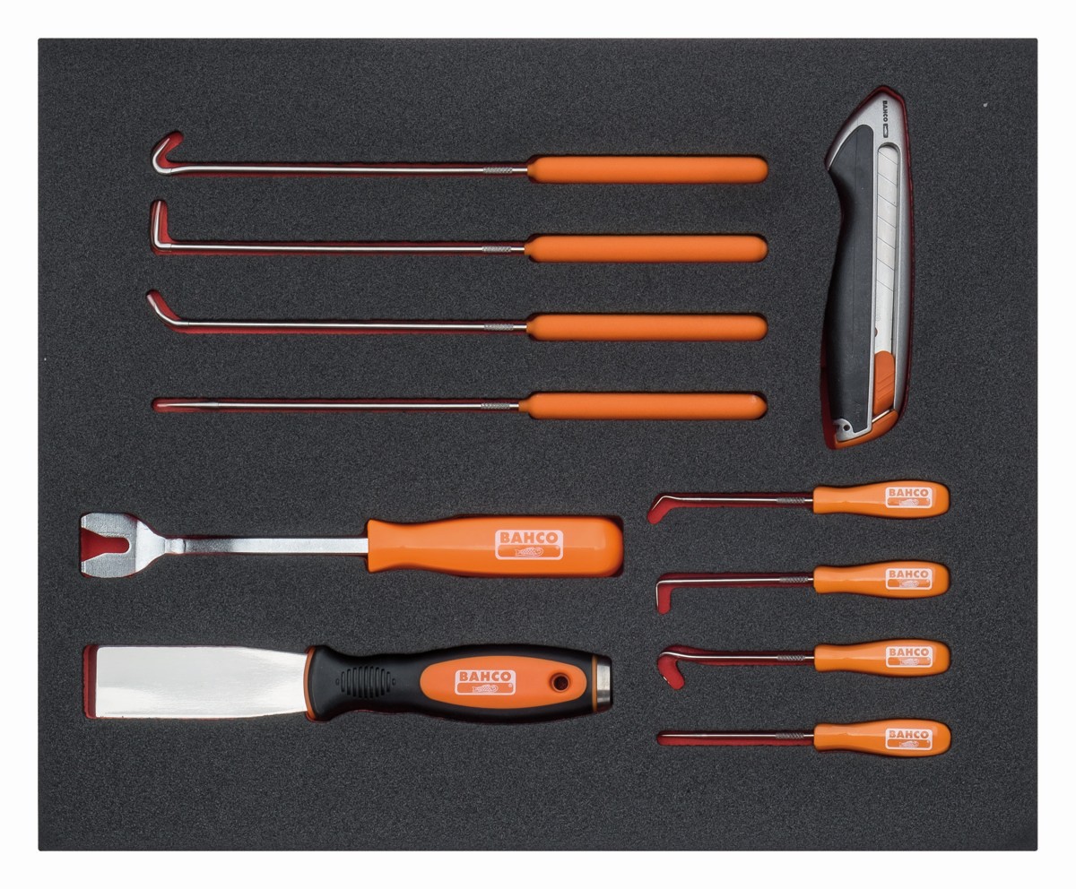 Juego de cúter, punzones y ganchos en bandeja de foam 2/3 Fit&Go (11 piezas) | FF1F5008 de BAHCO