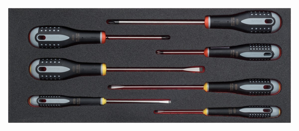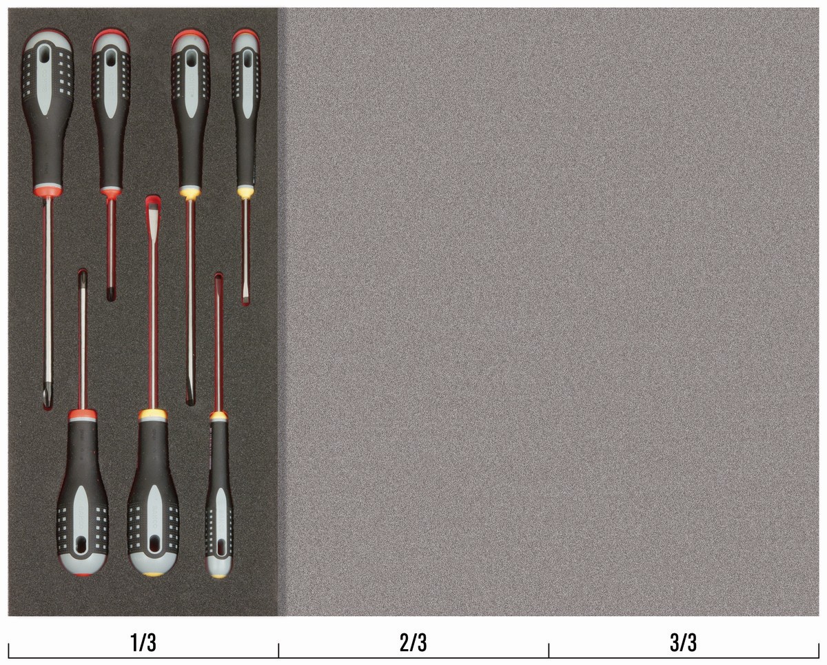 Juego de 4 destornilladores ranurados y 3 destornilladores Phillips en bandeja de foam 1/3 Fit&Go (7 piezas) | FF1E1001