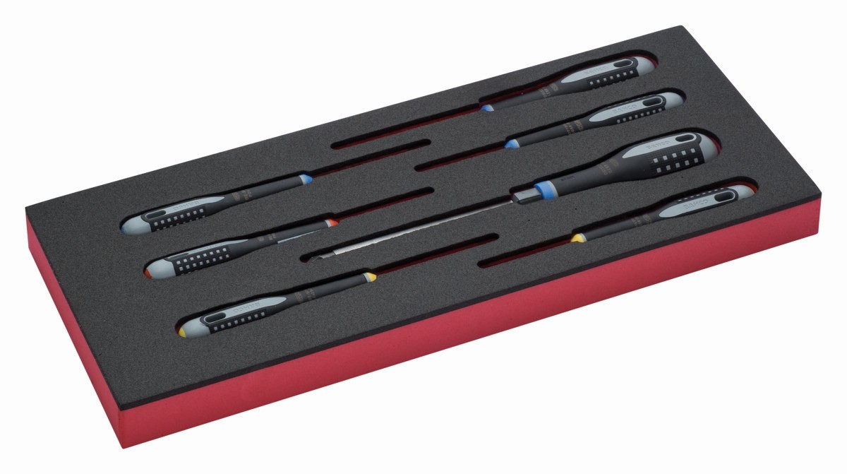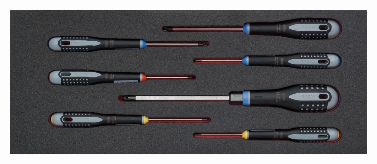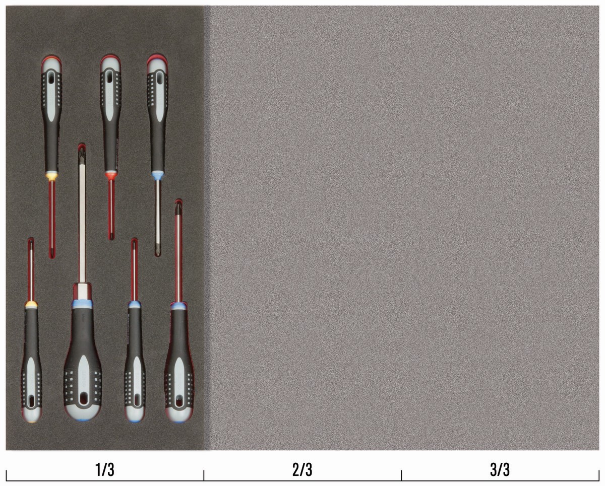 Juego de destornilladores ranurados, Phillips, Pozidriv y hexagonales en bandeja de foam 1/3 Fit&Go (7 piezas) | FF1E1005 de BAHCO