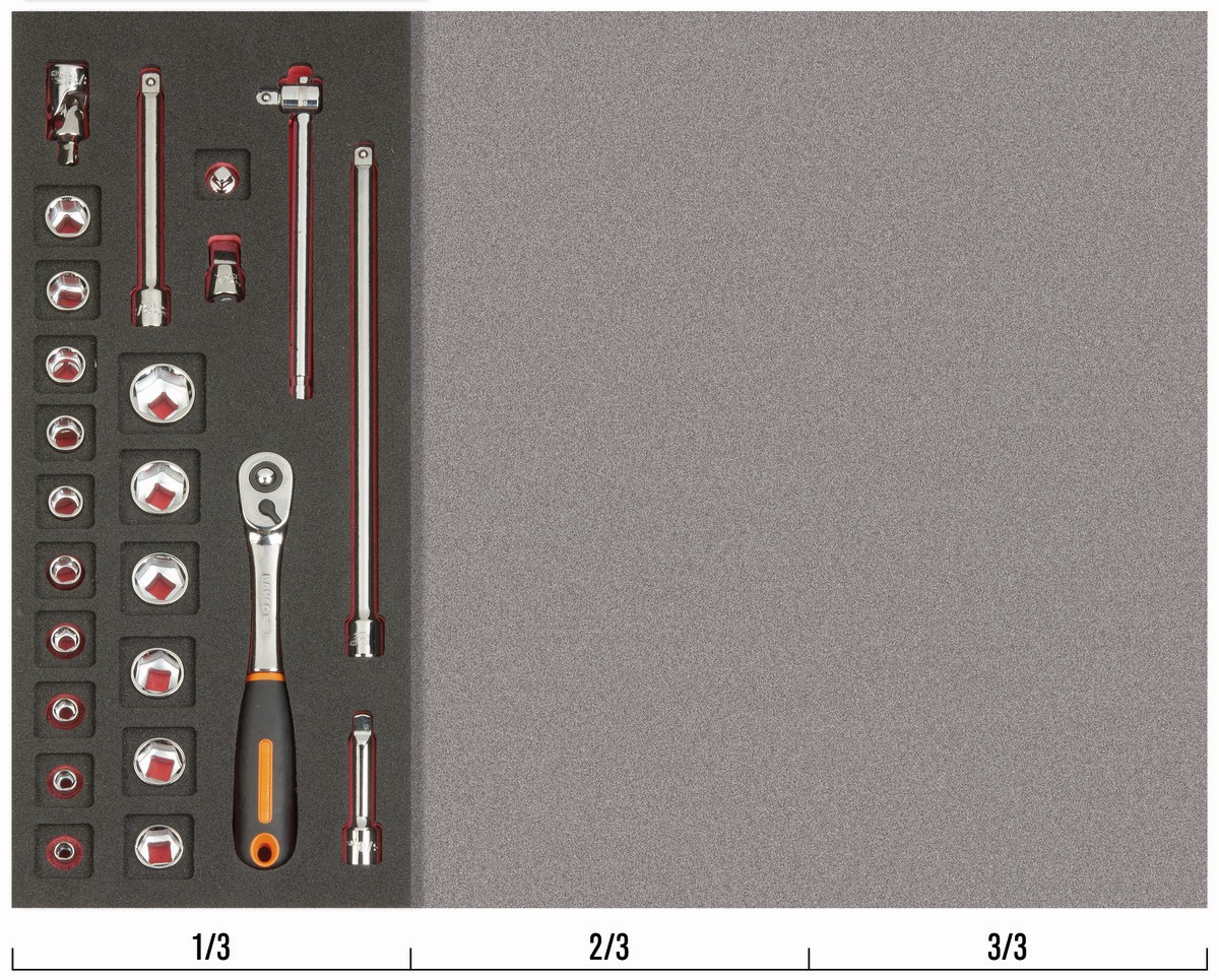 Juego de carraca de cabeza tipo pera y vasos de 3/8" en bandeja de foam 1/3 Fit&Go (24 piezas) | FF1E2101