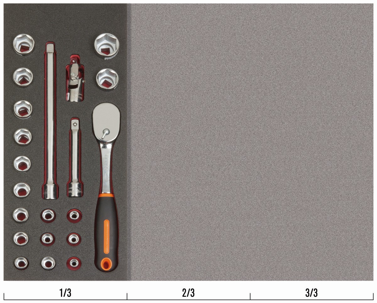 Juego de carraca de cabeza tipo pera y vasos de 1/2" en bandeja de foam 1/3 Fit&Go (21 piezas) | FF1E2202