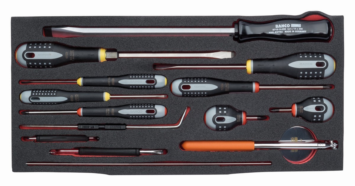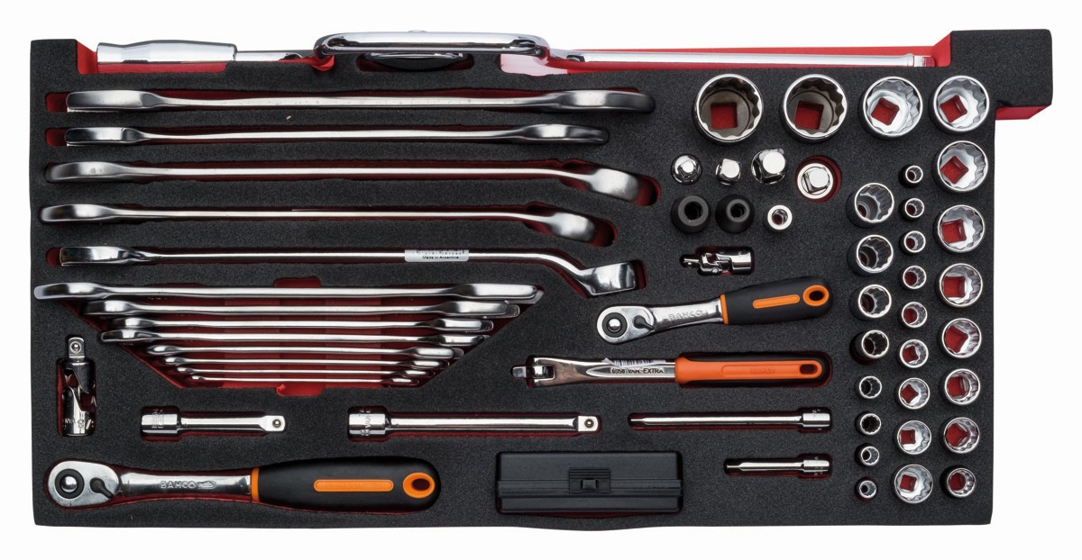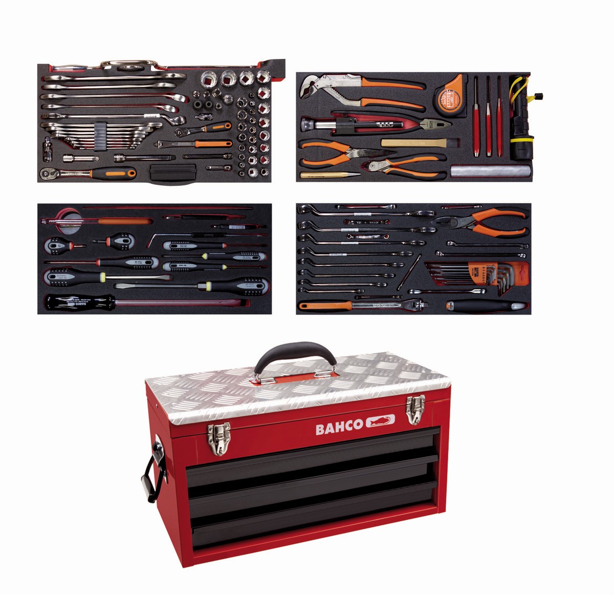 Incluye vasos, llaves, destornilladores, alicates y botadores de 1/4" y 3/8".