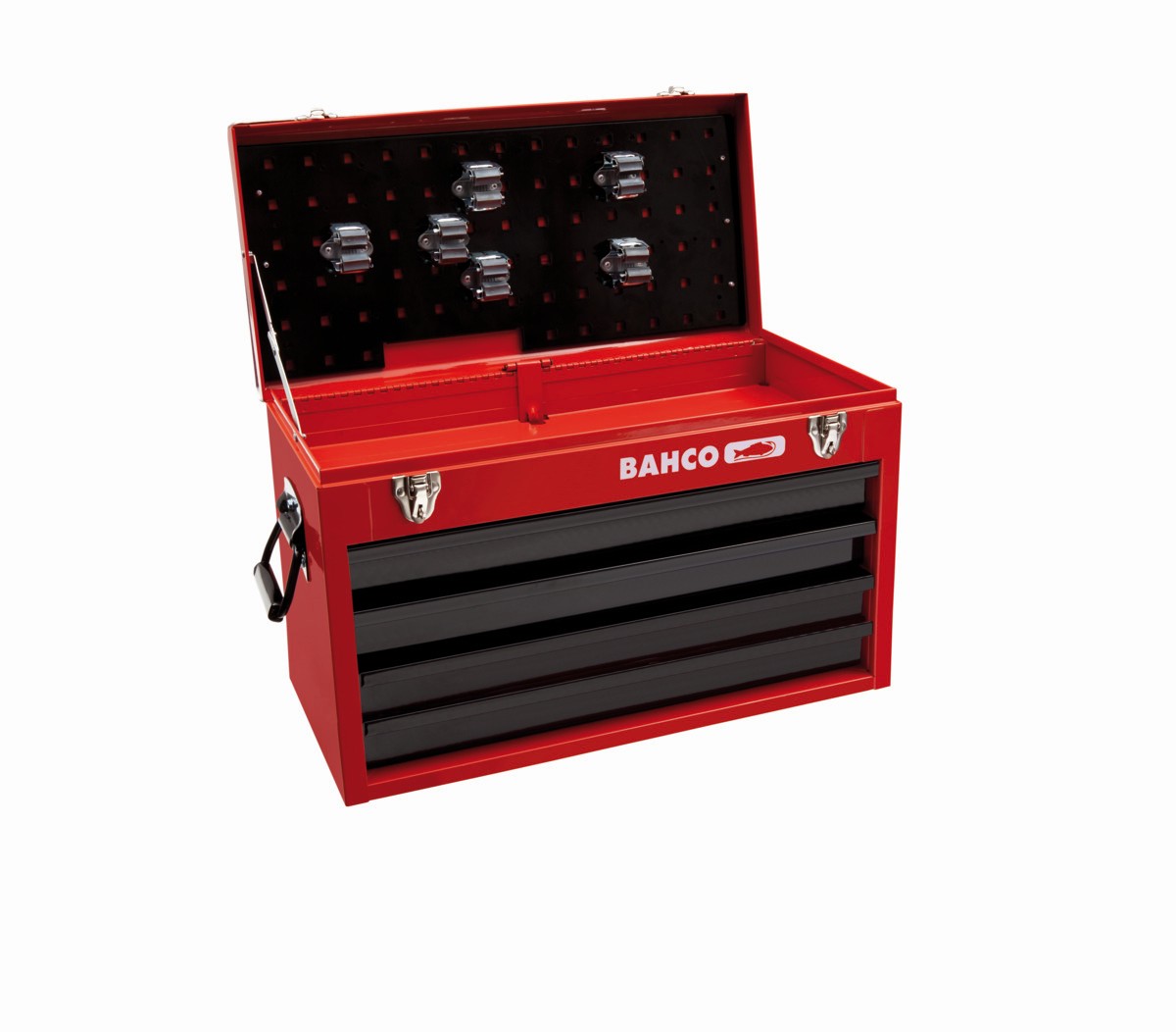 Carcasa compacta con gran capacidad, combinando cajones para las herramientas pequeñas y una bandeja superior para objetos medianos.