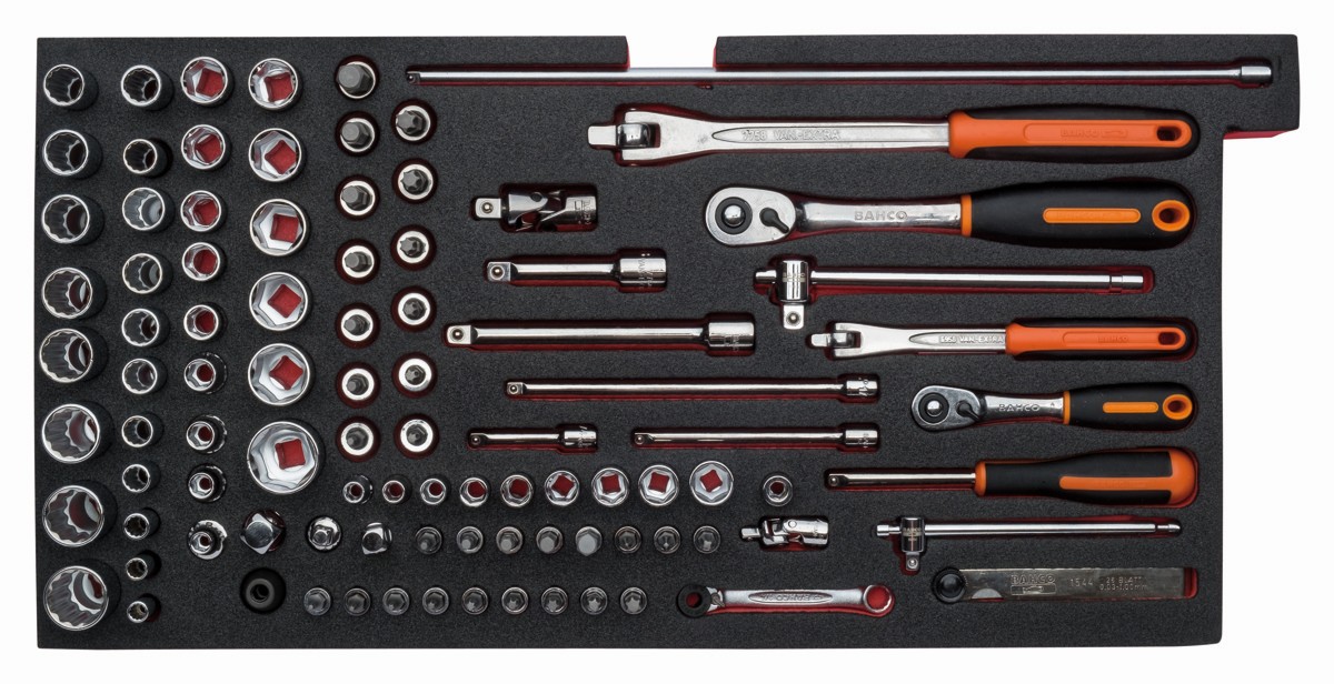 Bandeja de foam con composición de herramientas métricas para nuestras cajas metálicas de las series 1483K y 1483KHD (95 piezas) | FF3A09 de BAHCO