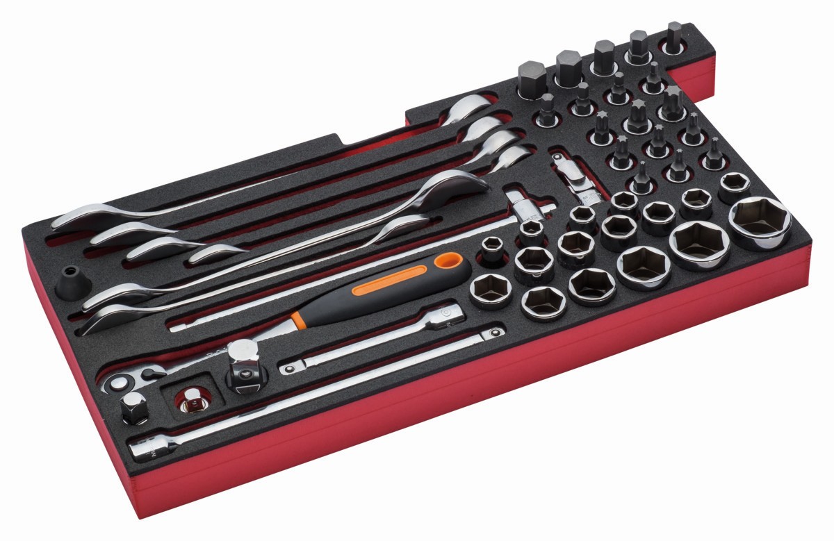 Bandeja de foam con composición de herramientas métricas para nuestras cajas metálicas de las series 1483K y 1483KHD (49 piezas) | FF3A13