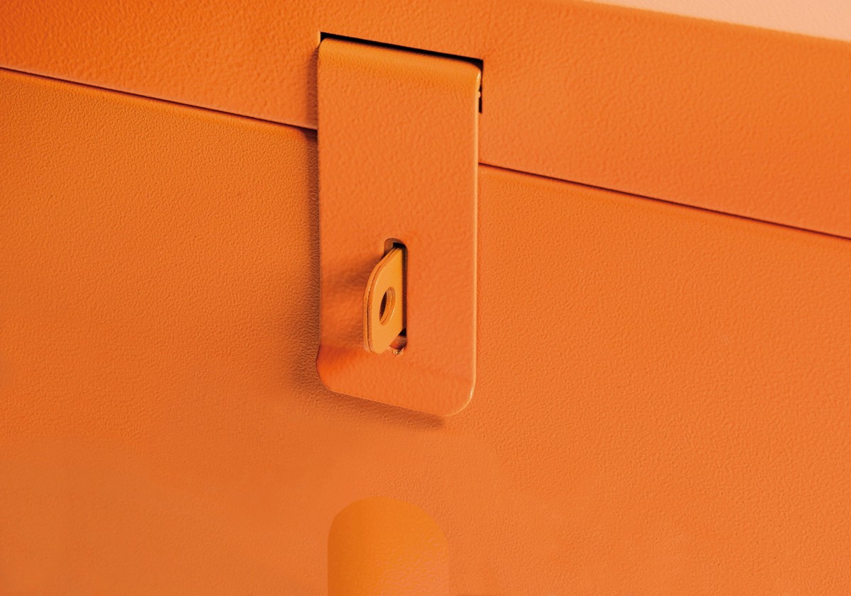 Recubrimiento en polvo naranja con acabado texturizado que es más resistente para entornos de trabajo exigentes.