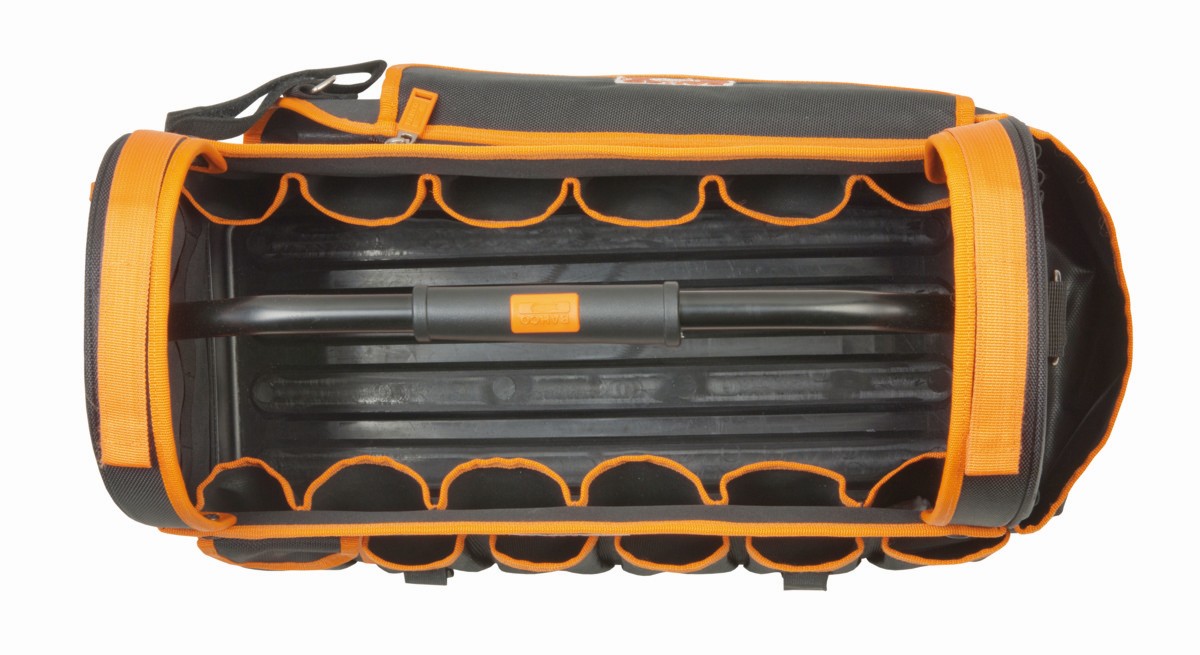 Bolsa portaherramientas textil abierta de 19" fabricada en una combinación de tejidos de poliéster 600 y 1680 Denier para una resistencia extrema