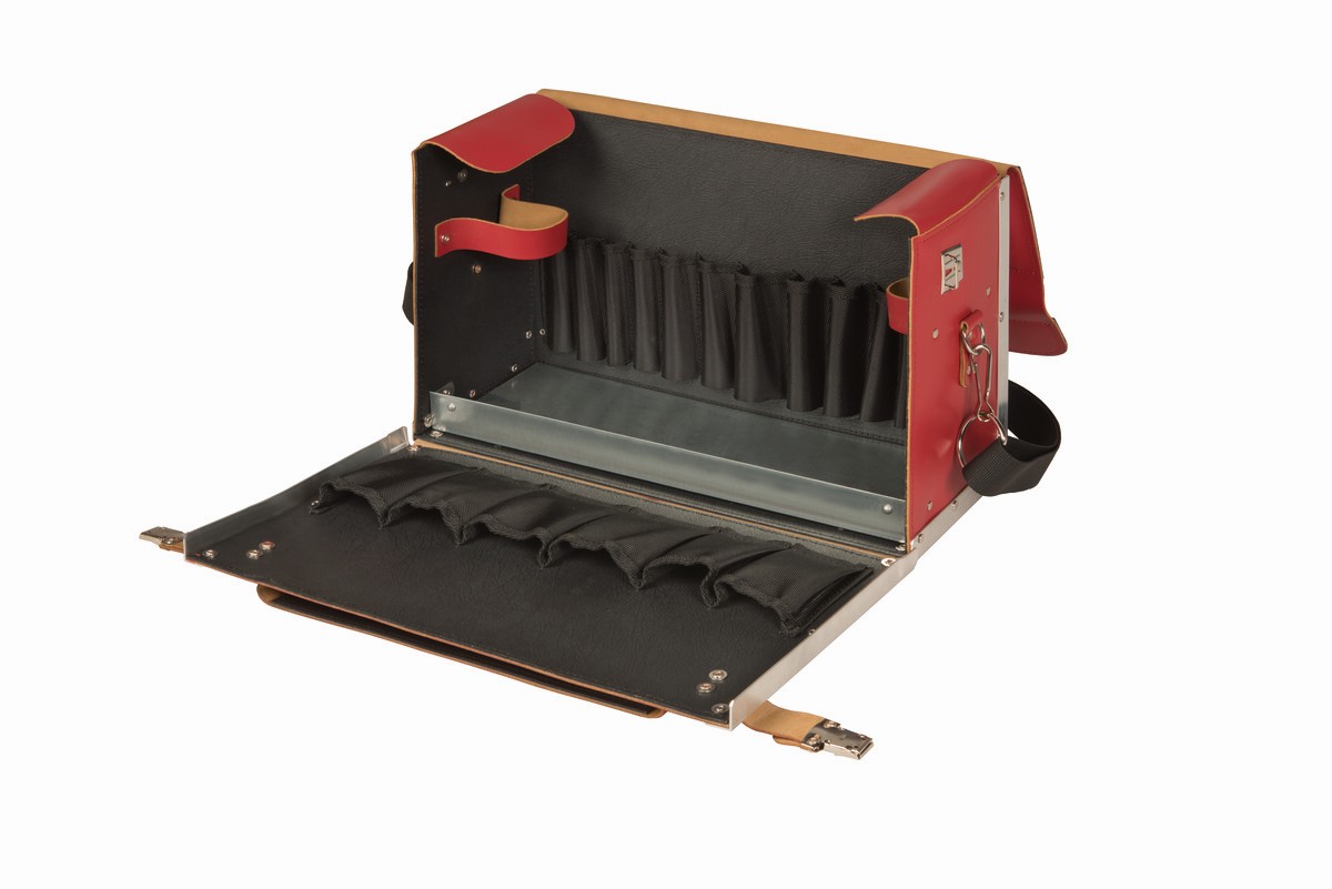 Caja para electricista de cuero con apertura frontal para un acceso más cómodo