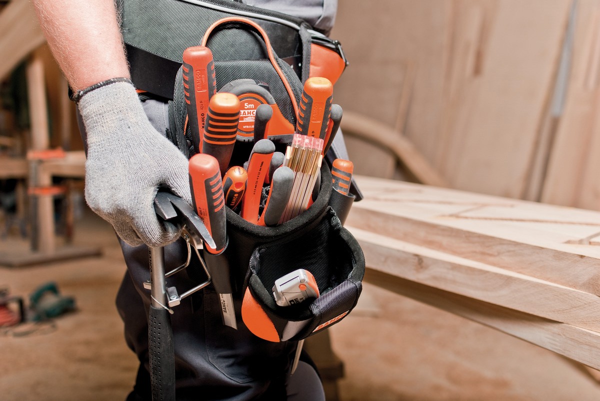 La bolsa universal se adapta a cualquier cinturón de herramientas de Bahco o a cinturones de vestir normales