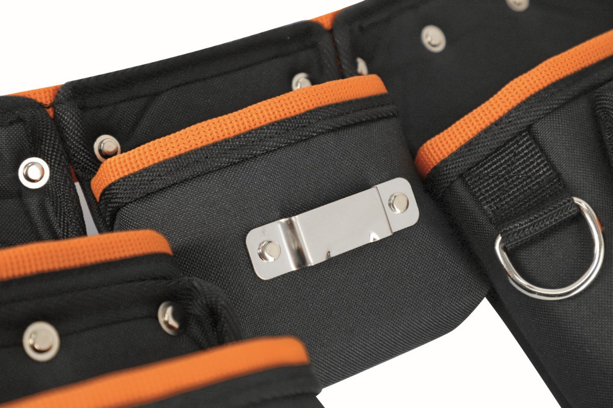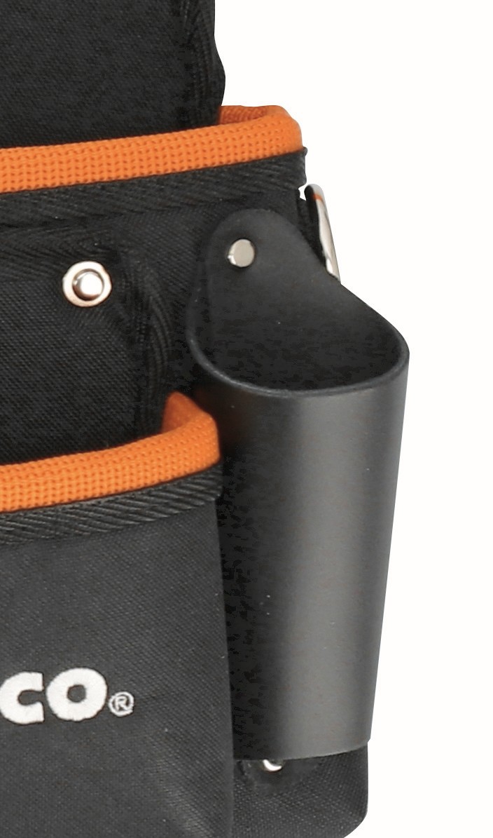 Clip de cinta de acero inoxidable remachado en la funda central para sujetar cualquier cinta métrica de constructor