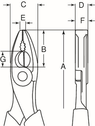 Referencia: TAH2628G-160 Variante: TAH2628G-160, Longitud, mm A: 170 mm, Longitud de la cabeza: 33 mm, Anchura de cabeza mm: 23 mm, Grosor de la cabeza mm: 10 mm, Anchura de la mordaza: 4 mm, Anchura de la punta mm: 10 mm, Longitud del cabezal de corte mm: 12 mm, Capacidad de corte de cuerda de Piano, mm: 1.8 mm, Capacidad de corte, Fe+ mm: 2.0 mm