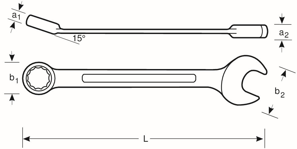 Referencia: SS002-15 Variante: SS002-15, Anchura del anillo: 23 mm, Grosor del anillo: 6 mm, Grosor de la boca: 7 mm, Longitud, mm L: 175 mm, Tamaño de la llave, mm: 15 mm, Anchura de la boca: 28 mm