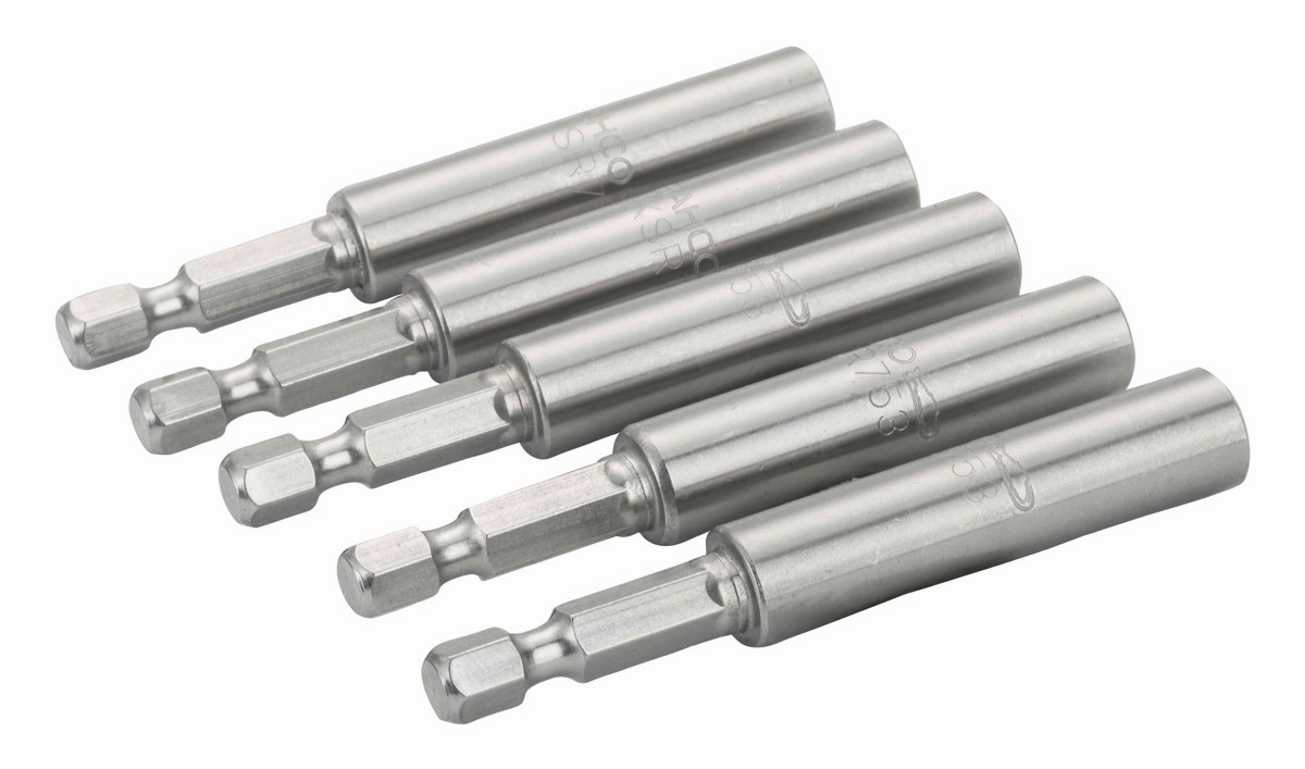 • Portapuntas universal de acero inoxidable para puntas para insertos hexagonales de ¼”.