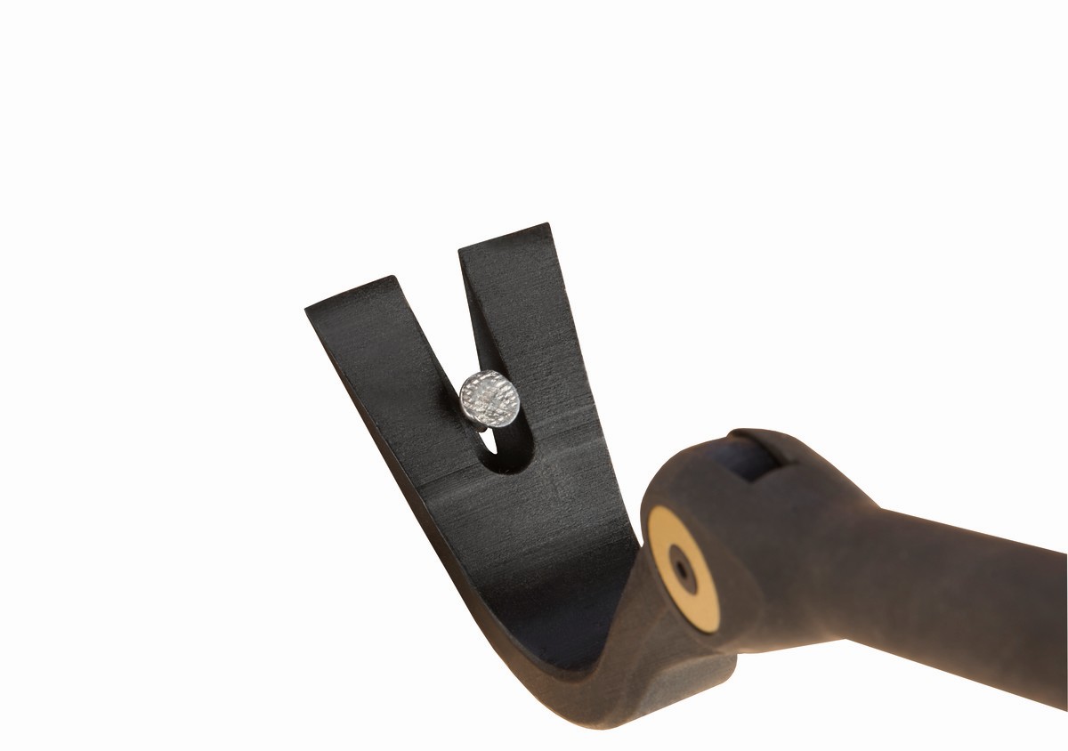 Cabeza con pinza en V, diseñada especialmente para alinearse con el rango de golpeo