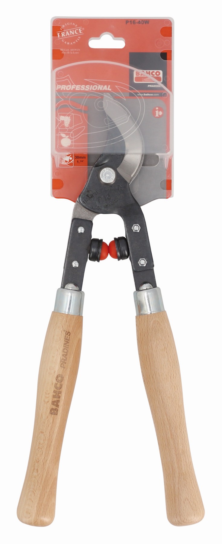 Tijeras de podar de dos manos de corte deslizante de 30 mm profesionales, con mango de madera y contrahoja forjada | P16-40W