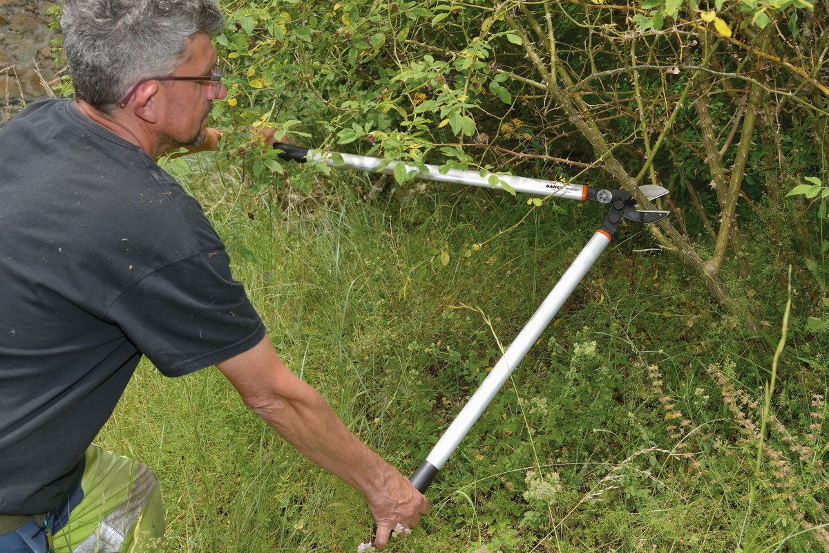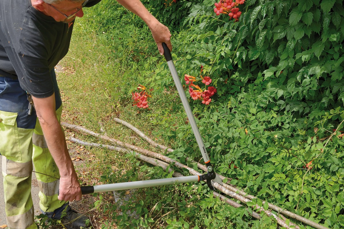 La acción de palanca proporciona un 50 % más de potencia, lo que permite cortar ramas grandes con menos esfuerzo.
