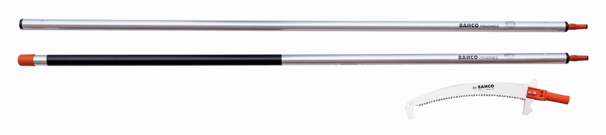 Juego de poda en altura que contiene la pértiga base ASP-1850G, la extensión ASP-1850, el adaptador para serruchos ASP-AS y el serrucho con una hoja de 36 mm ASP-AS-C36-JT-M