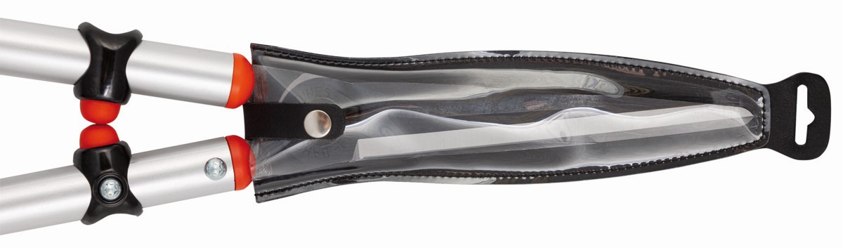 Buena maniobrabilidad gracias a los mangos delgados y de forma redondeada. Esto permite diferentes posiciones de las manos. Cómodo mango negro. Los amortiguadores absorben los golpes y las vibraciones. Se incluye una funda de cuero para la hoja para evitar lesiones y para una mejor protección