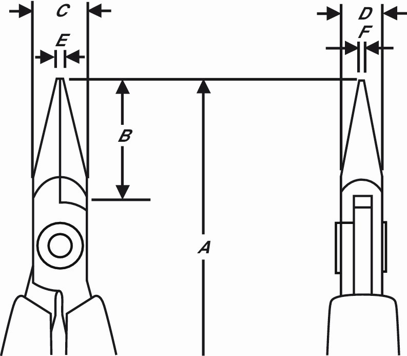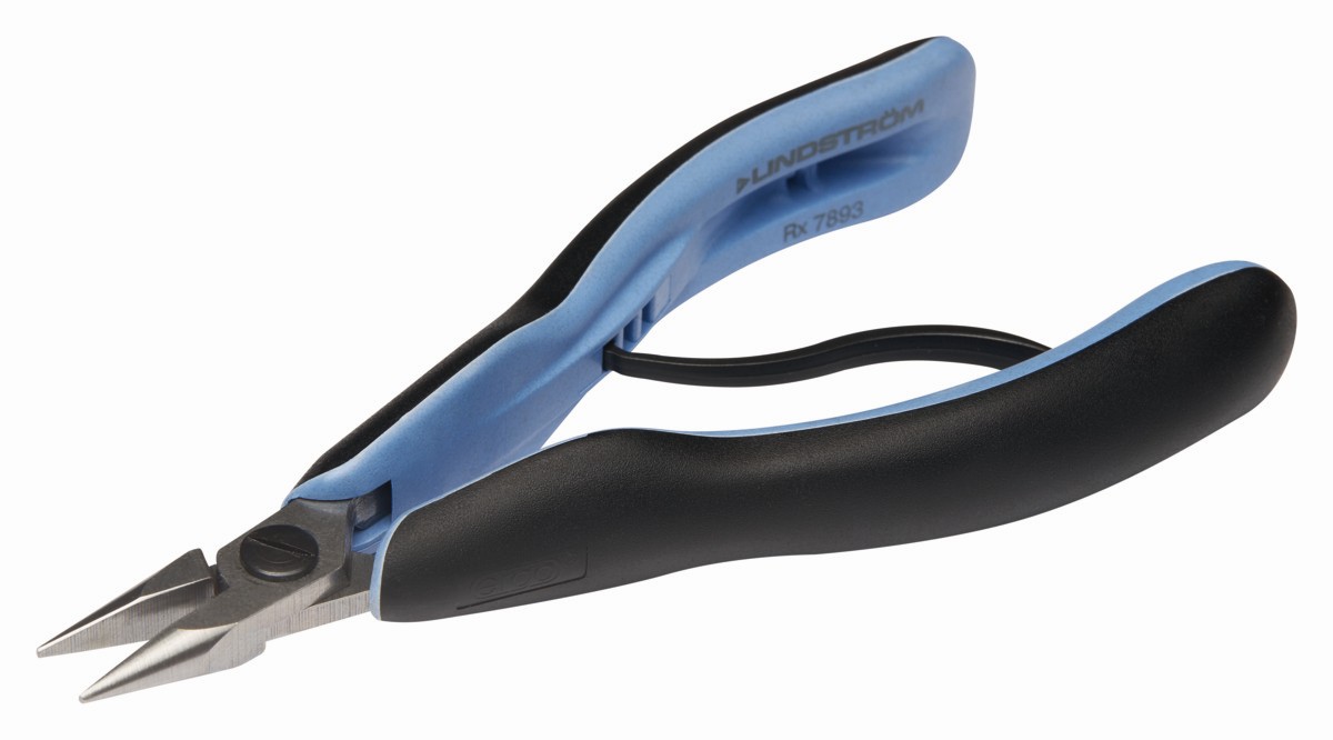 Referencia: RX 7893 Variante: RX 7893, Resistividad: Dissipative, Longitud, mm A: 146.5 mm, Altura de la cabeza mm: 20 mm, Altura de la cabeza pulg: 0,79 in, Anchura de cabeza mm: 9 mm, Anchura de cabeza pulg: 0.35 in, Anchura del borde mm: 1,2 mm, Anchura del borde pulg: 0,05 in, Anchura de la punta pulg: 0,03 in, Tipo de cabeza: Snipe Nose, Short, Superficie de la boca: Smooth, Longitud pulg: 5.77 in, Tamaño de la cabeza: S, Grosor de la cabeza mm: 6,7 mm