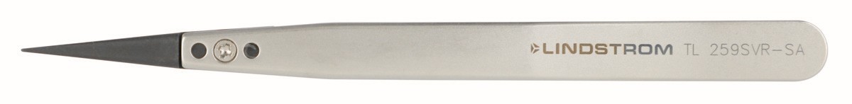 Pinzas de plástico de PVDF con punta reemplazable y segura para ESD, estilo 259SVR con puntas finas, puntiagudas y fuertes | TL 259SVR-SA de LINDSTROM Referencia: TL 259SVR-SA Variante: TL 259SVR-SA, Longitud: 130 mm, Longitud, pulg: 5,12 in, Ancho De La Pinza (mm): 10 mm, Altura De La Pinza (mm): 15 mm, Grosor de la punta, mm: 0,6 mm, Grosor de la punta, in: 0,02 in, Anchura de la punta, mm: 0,6 mm, Anchura de la punta, in: 0,02 in, Peso: 0,6 oz, Forma de la pinza: 259SVR, Ancho De La Pinza: 0,39 in, Altura De La Pinza: 0,59 in Producto sin disponibilidad.Consulte el listado completo de tallas/medidas .