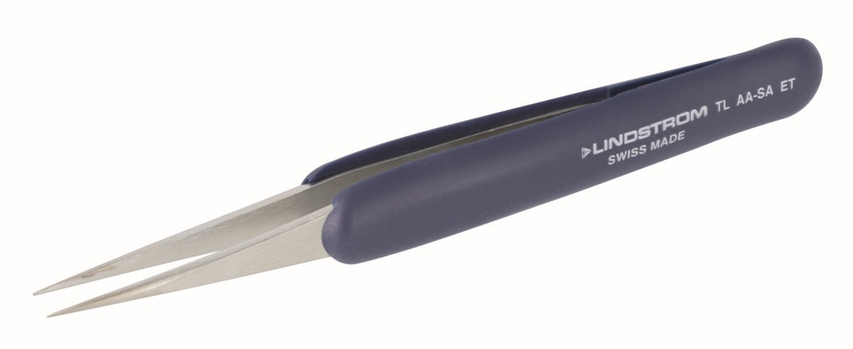 Pinzas ergonómicas de acero inoxidable ESD estilo AA con puntas afiladas y finas | TL AA-SA-ET de LINDSTROM