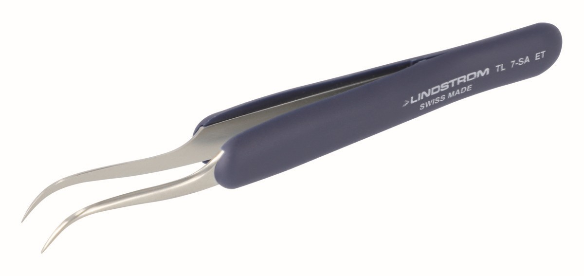 Pinzas ergonómicas de acero inoxidable ESD Style 7 con puntas curvadas y muy finas | TL 7-SA-ET de LINDSTROM