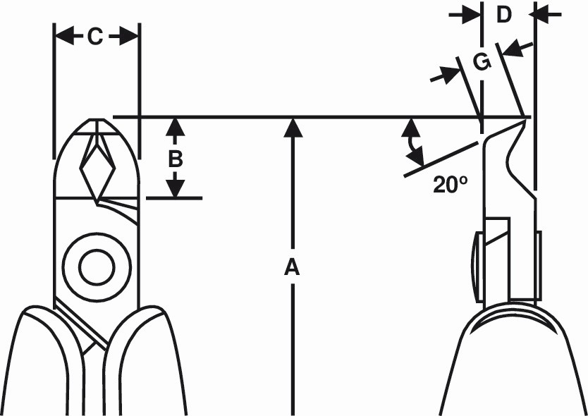• Alicates de corte oblicuo de 20º, de precisión y con cabeza corta que han sido desarrollados según los procesos científicos ERGO™.