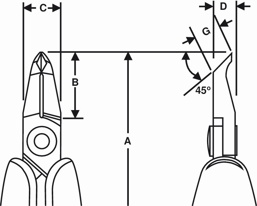 Alicates de corte oblicuo de 45º, de precisión y con cabeza larga que han sido desarrollados según los procesos científicos ERGO™.