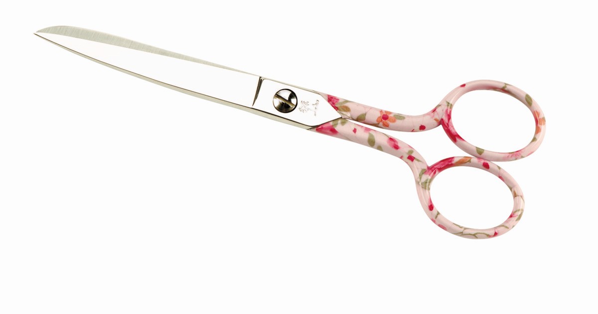 Tijera Costura Cromada Y Decorada Rosa