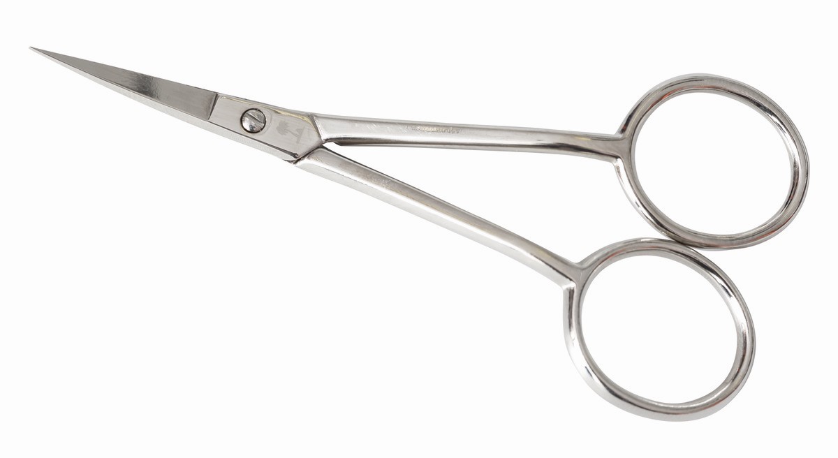 Hoja curva y desplazada respecto del mango para facilitar el acceso a la zona de corte
