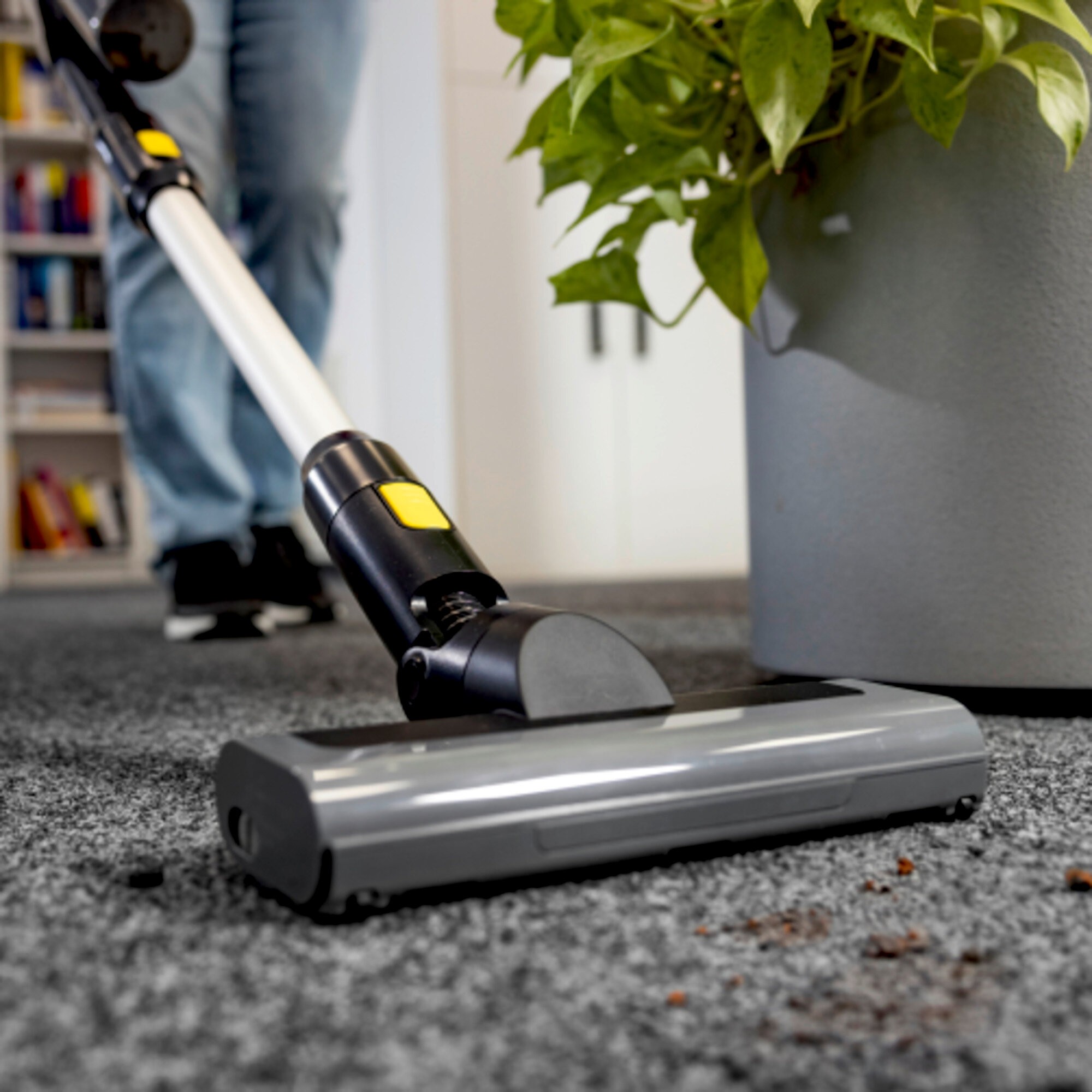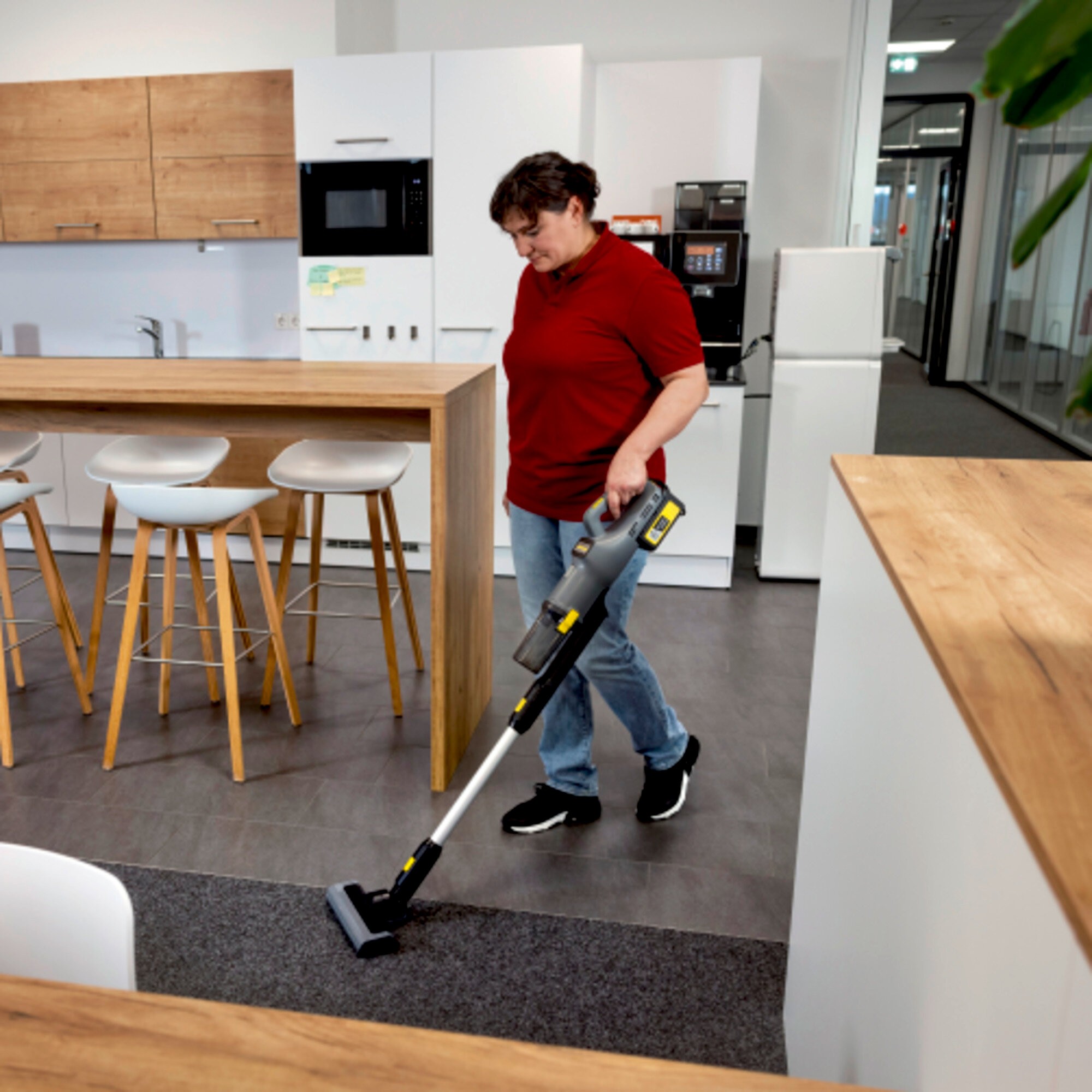 El potente aspirador en seco a batería LVS 1/2 Bp ofrece una extraordinaria potencia de aspiración. Está equipada con una boquilla para ranuras y una boquilla para suelos activa para limpiar a fondo todo tipo de suelos y superficies textiles. La tecnología de filtros ciclónicos de Kärcher proporciona una potencia de aspiración constantemente elevada. Gracias a su diseño compacto y sin cables y a su maniobrabilidad y versatilidad, es ideal para los sectores de la hostelería, la restauración, el comercio minorista y la limpieza de edificios: perfecto para la limpieza de suciedad puntual y también adecuado para escaleras gracias a su libertad de movimiento sin restricciones. El filtro HEPA 13 integrado cumple el máximo nivel de higiene. El LVS 1/2 Bp es fácil de manejar: la potencia de aspiración puede regularse en 3 niveles y, en unos pocos movimientos, el aspirador de suelos se transforma en un aspirador de mano para tapicerías y superficies diversas. El depósito para la suciedad no necesita bolsas de filtro, ahorra costes y puede vaciarse de forma higiénica. Gracias a las potentes baterías recargables de 36 voltios de Kärcher, el aspirador consigue excelentes resultados de limpieza. Nota: la batería y el cargador rápido no están incluidos en el volumen de suministro y deben pedirse por separado.