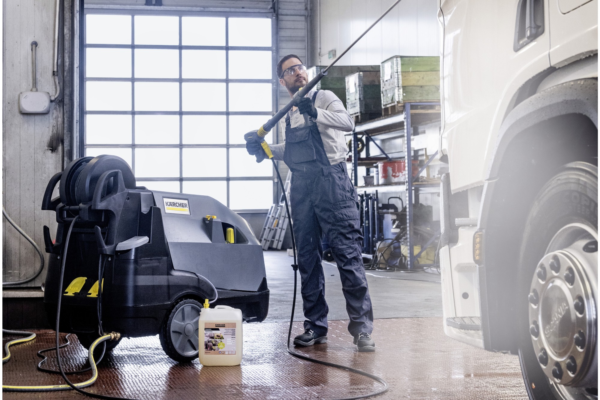 El detergente activo natural alcalino PressurePro RM 82N de Kärcher resulta muy versátil para eliminar aceites, grasas y suciedad orgánica con hidrolimpiadoras. Este detergente alcalino, que figura en la lista de productos de servicio para la producción ecológica en Alemania (FiBL), está compuesto por un 99 % de ingredientes naturales. Los tensioactivos que contiene se obtienen a partir de salvado de trigo y maíz, entre otros, y son totalmente biodegradables. En la agricultura (ecológica) o en la industria del transporte, en la industria alimentaria, en las obras o en los talleres, el detergente activo sostenible y natural convence por su máxima potencia de limpieza siempre que haya que limpiar equipos, vehículos, tractores, cajas, bidones, cámaras frigoríficas, suelos o incluso lonas y cintas transportadoras. No contiene siliconas, aromas ni colorantes, es de precipitación fácil en separador y muy cuidadoso con los materiales, incluso con metales y superficies pintadas, gracias al agente anticorrosivo que contiene. El detergente activo natural alcalino PressurePro RM 82N ofrece una elevada potencia de limpieza incluso con agua a baja temperatura y puede utilizarse con hidrolimpiadoras de agua caliente hasta 90 °C.