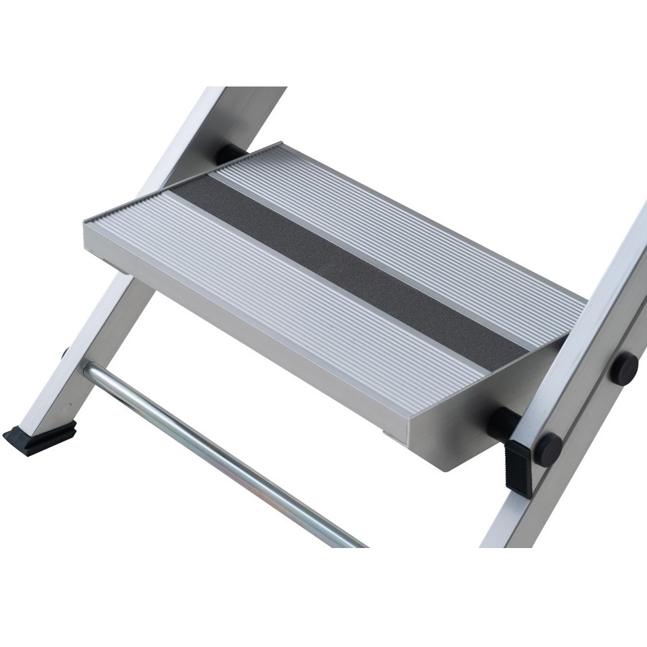 El taburete profesional de aluminio está diseñado para proporcionar una solución segura y estable en trabajos de acceso a baja altura en entornos profesionales. Su estructura fabricada en aluminio anodizado ofrece una combinación equilibrada entre resistencia mecánica, ligereza y durabilidad.